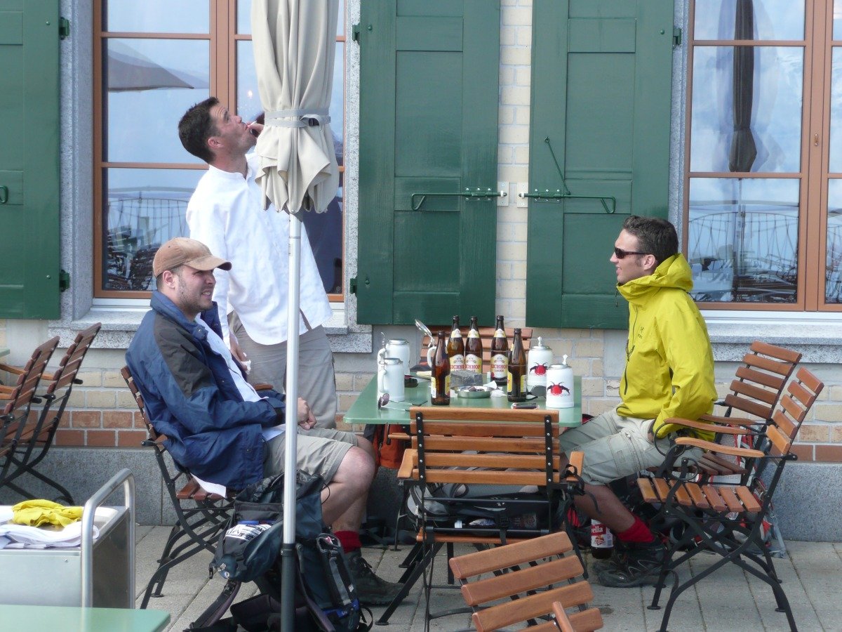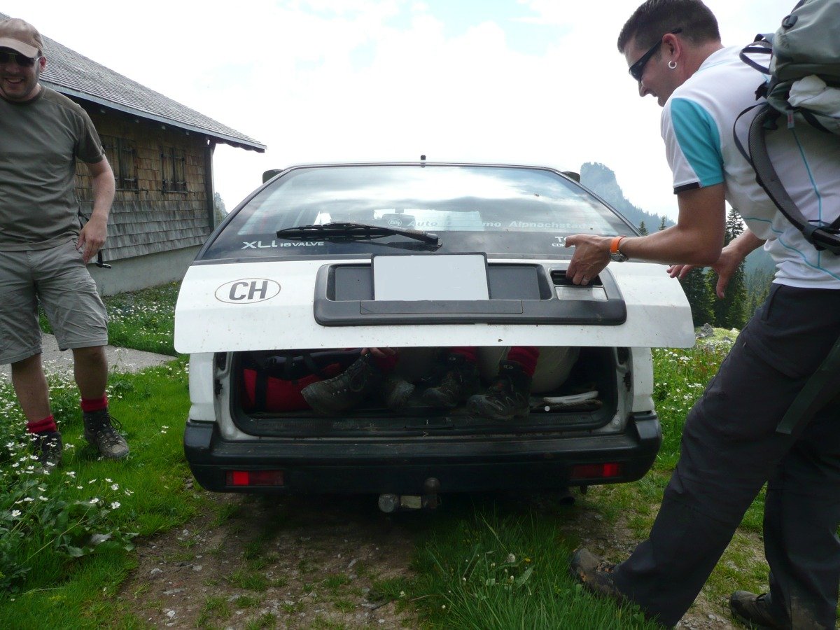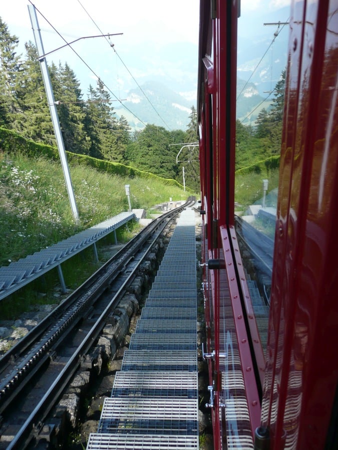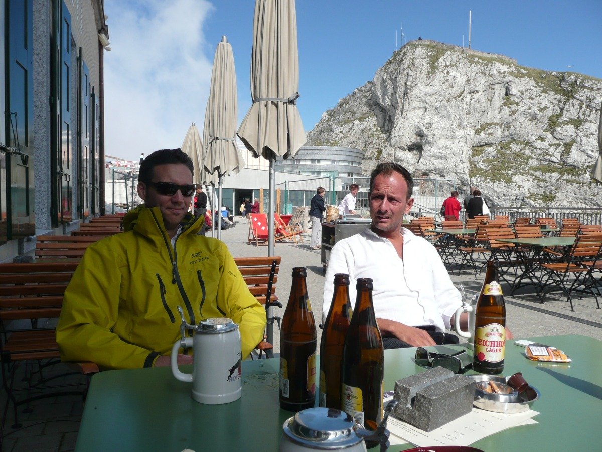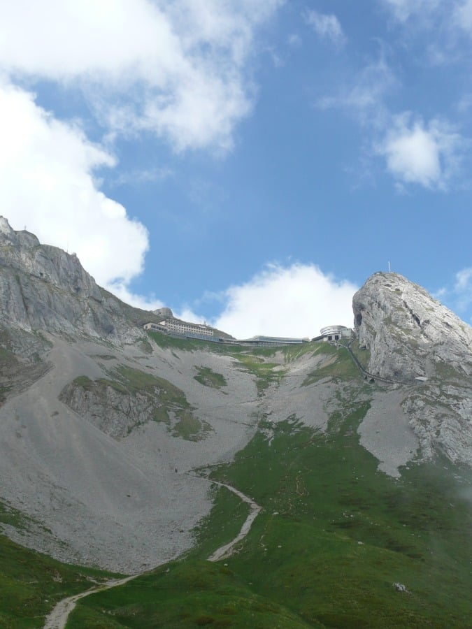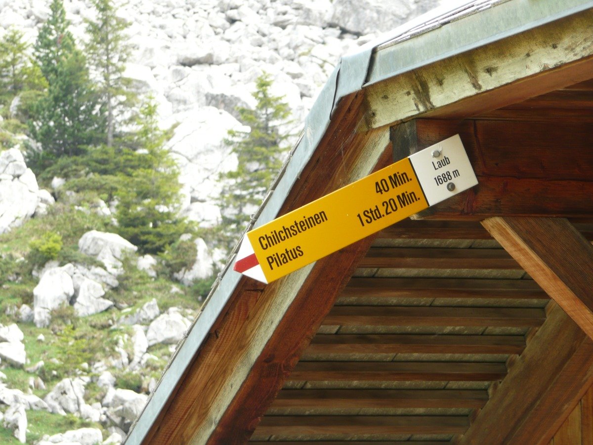 In der Lütholdsmatt machen wir Rast und beraten uns wies weiter gehen soll. Der Weg auf den Pilatus ist noch weit und das Wetter nicht mehr sehr sicher. Ein freundlicher Älpler bietet uns an, uns im Auto bis zum "Laub" zu fahren. So sparen wir 4 km oder eine Stunde Aufstieg. Vom Laub wandern wir das letzte Stück bis auf den Pilatus-Kulm. Nach dem wohlverdienten Gipfel-Bier fahren wir mit der steilsten Zahnradbahn der Welt hinunter nach Alpnach.