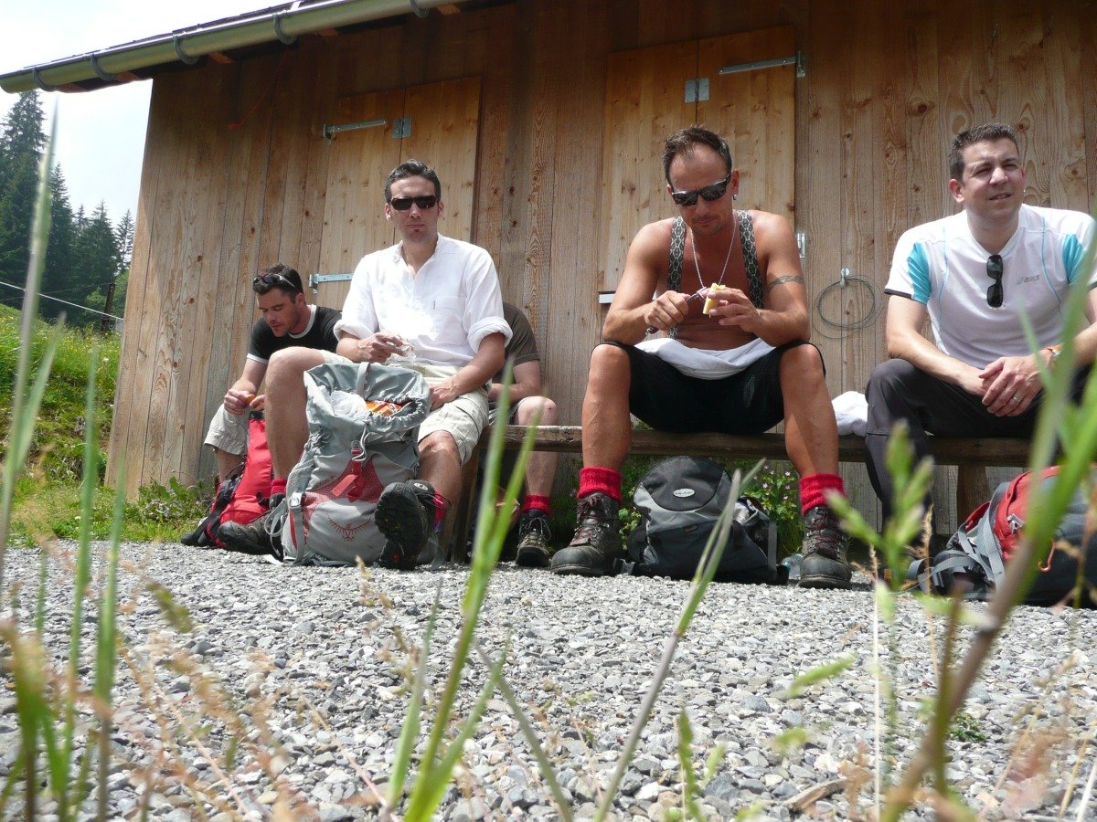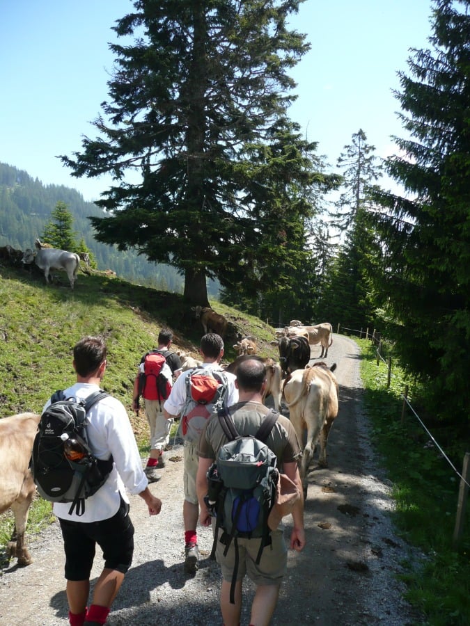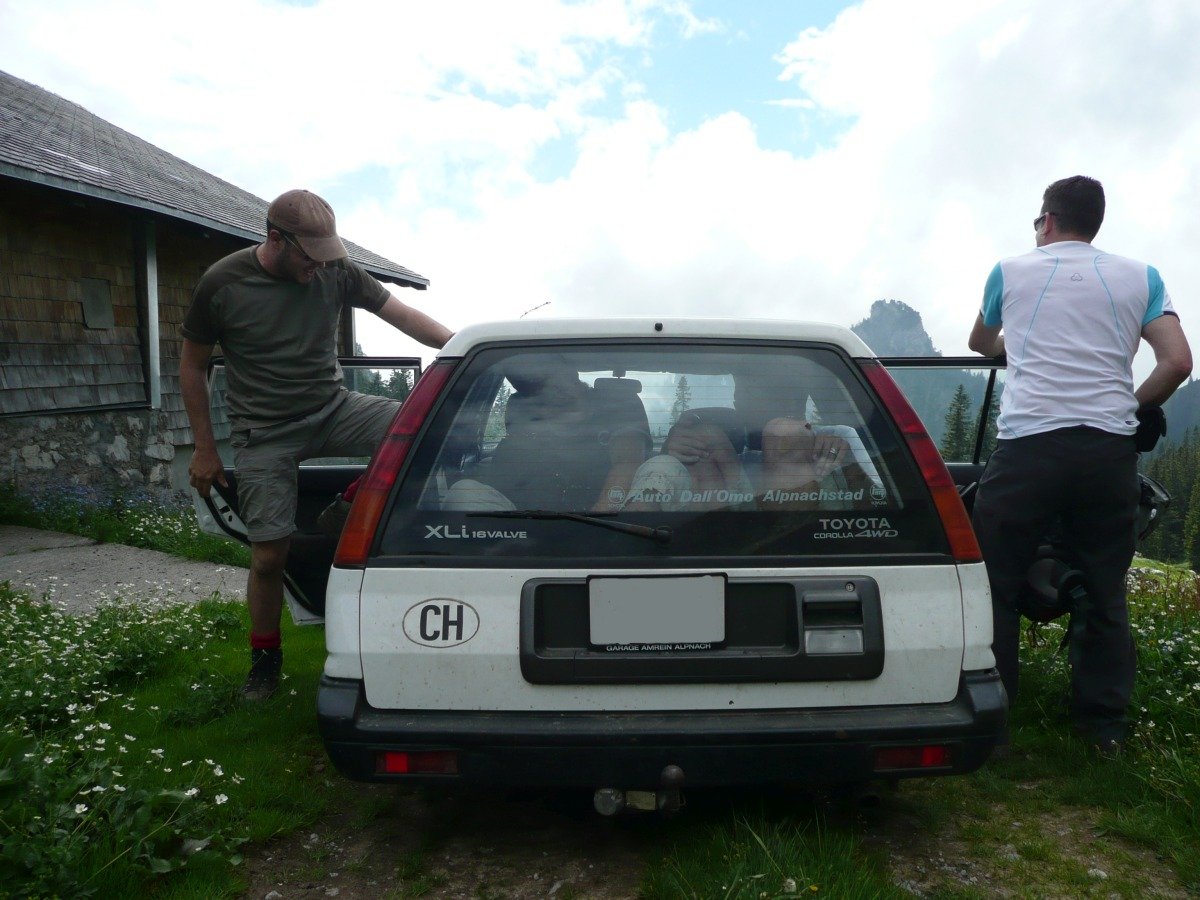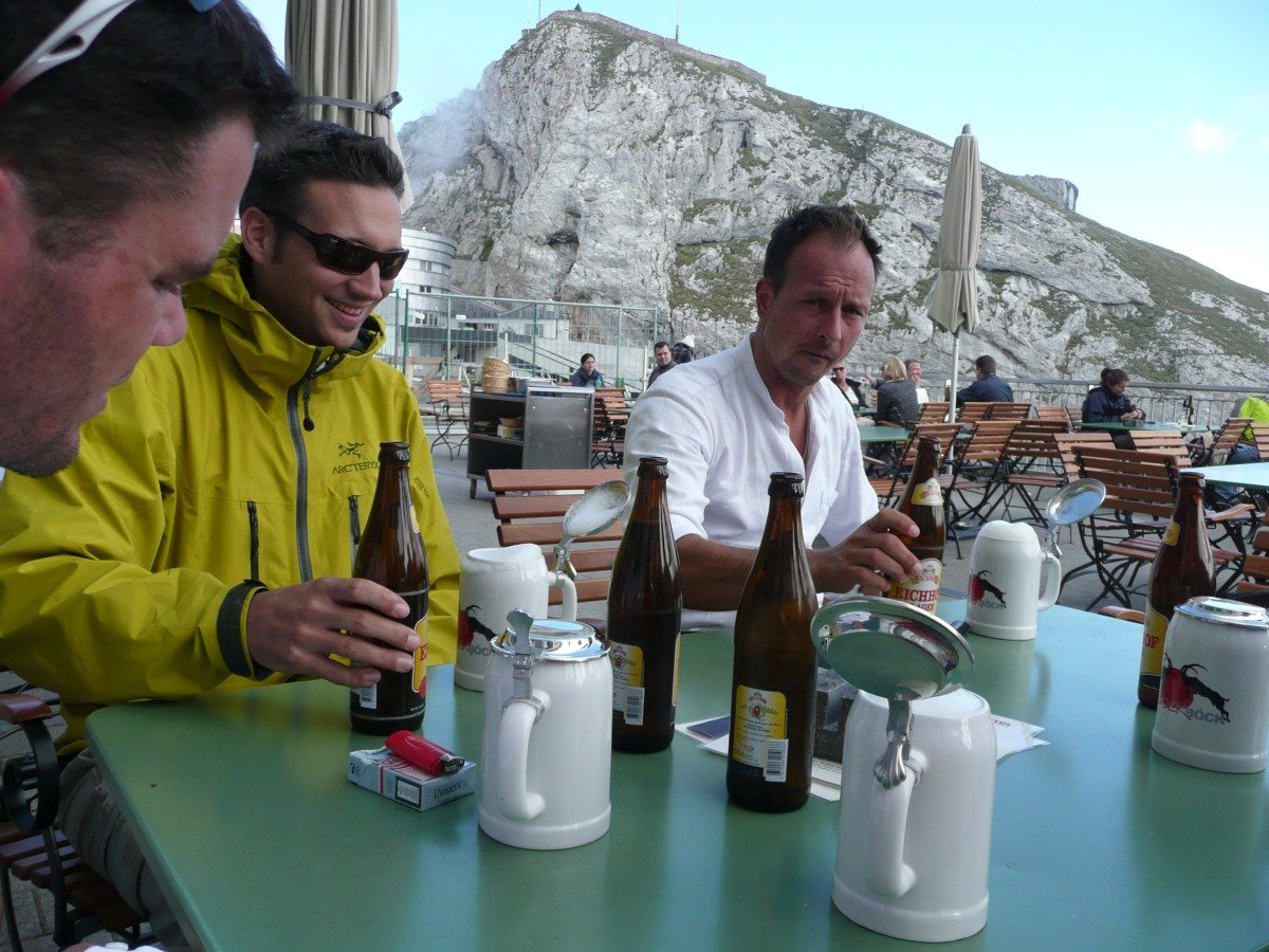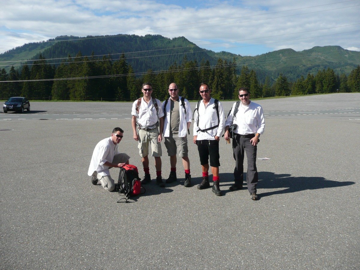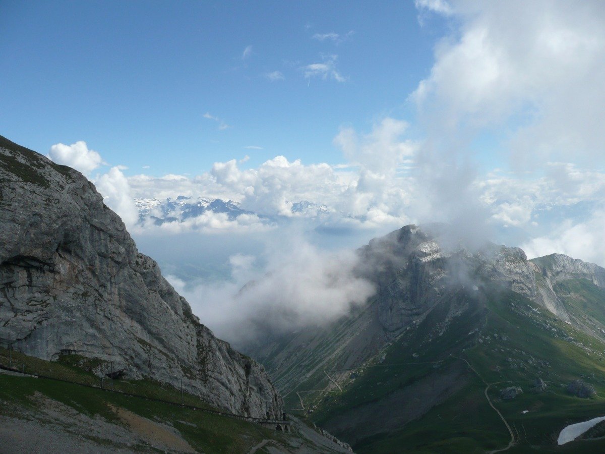 In der Lütholdsmatt machen wir Rast und beraten uns wies weiter gehen soll. Der Weg auf den Pilatus ist noch weit und das Wetter nicht mehr sehr sicher. Ein freundlicher Älpler bietet uns an, uns im Auto bis zum "Laub" zu fahren. So sparen wir 4 km oder eine Stunde Aufstieg. Vom Laub wandern wir das letzte Stück bis auf den Pilatus-Kulm. Nach dem wohlverdienten Gipfel-Bier fahren wir mit der steilsten Zahnradbahn der Welt hinunter nach Alpnach.
