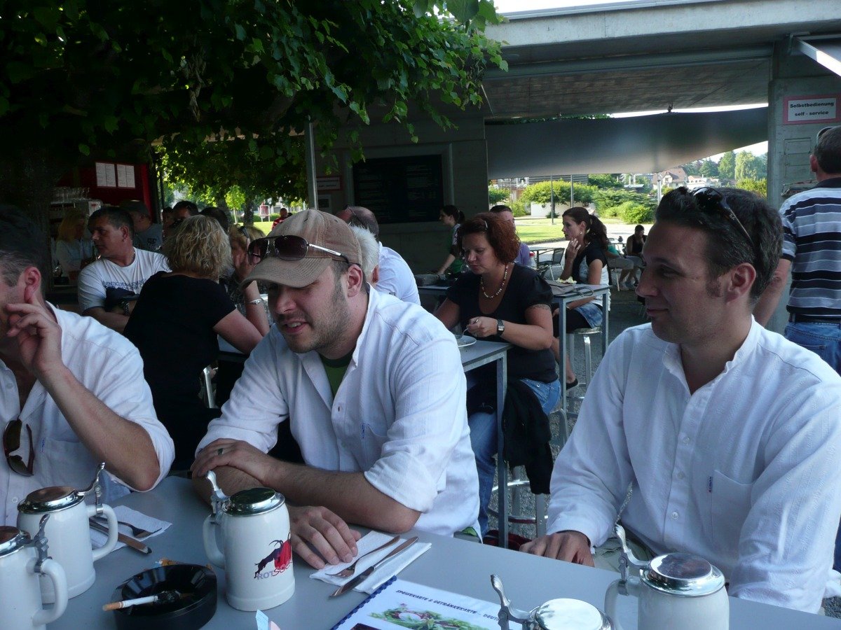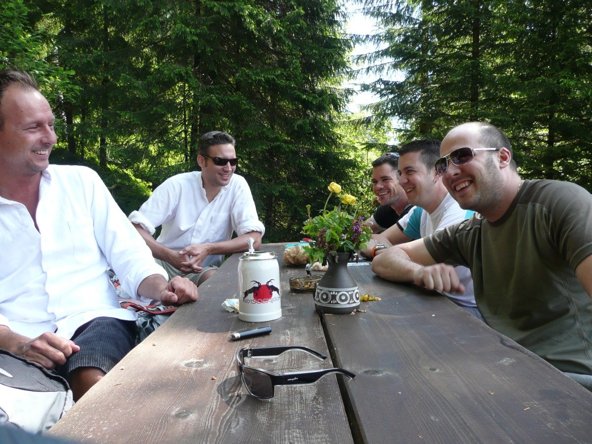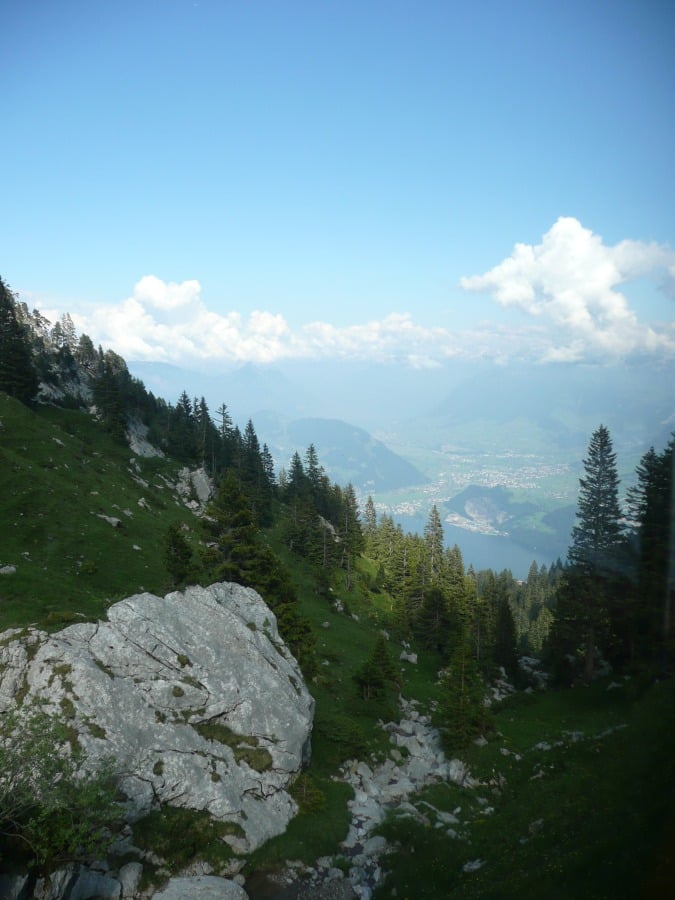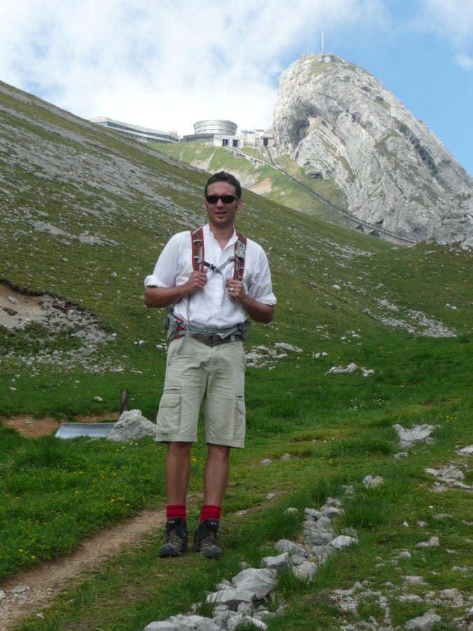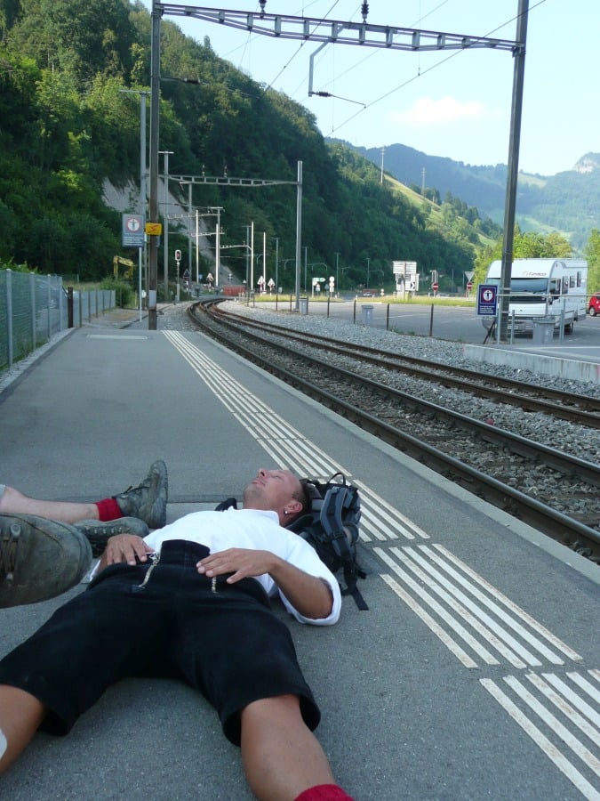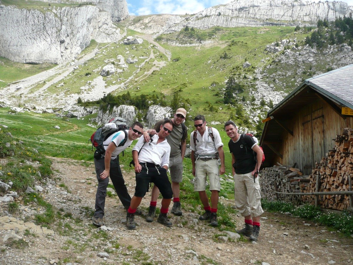 In der Lütholdsmatt machen wir Rast und beraten uns wies weiter gehen soll. Der Weg auf den Pilatus ist noch weit und das Wetter nicht mehr sehr sicher. Ein freundlicher Älpler bietet uns an, uns im Auto bis zum "Laub" zu fahren. So sparen wir 4 km oder eine Stunde Aufstieg. Vom Laub wandern wir das letzte Stück bis auf den Pilatus-Kulm. Nach dem wohlverdienten Gipfel-Bier fahren wir mit der steilsten Zahnradbahn der Welt hinunter nach Alpnach.
