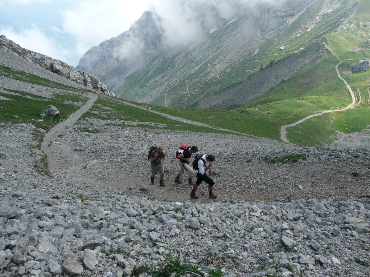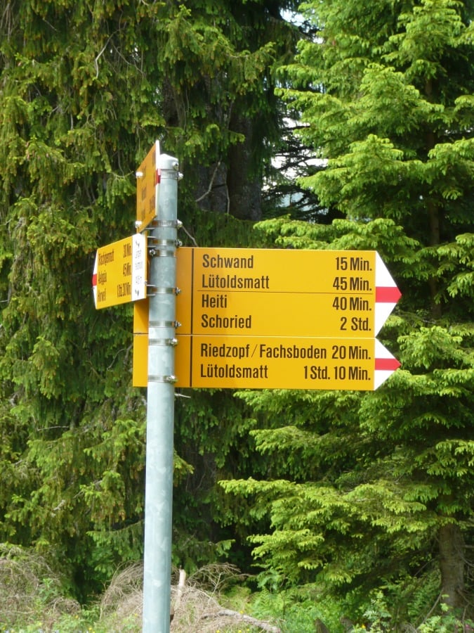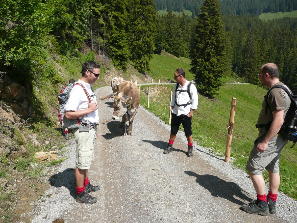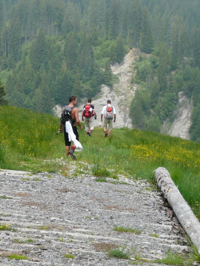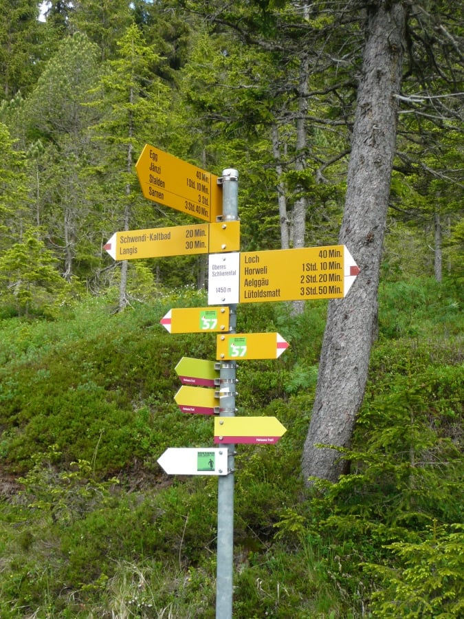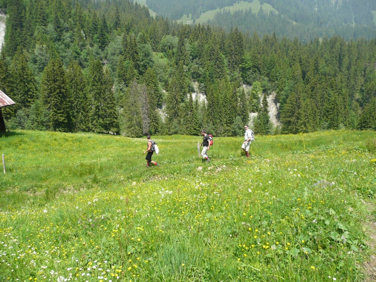Früh sind wir heute unterwegs. Leider fahren die Postautos ab Sarnen erst spät, darum müssen wir mit dem Taxi bis ins Langis. Von dort wandern wir vorbei am Schwendi Kaltbad das Schlierental entlang bis zum Horweli. Von dort Richtung Schwand, wo wir bei einer verlassenen Alphütte Mittagsrast machen. Danach geht's weiter durch zerklüftetes Gebiet bis zur Lütholdsmatt.