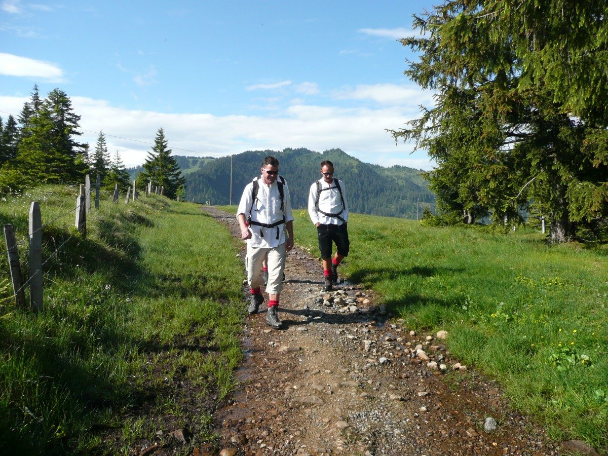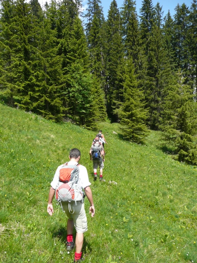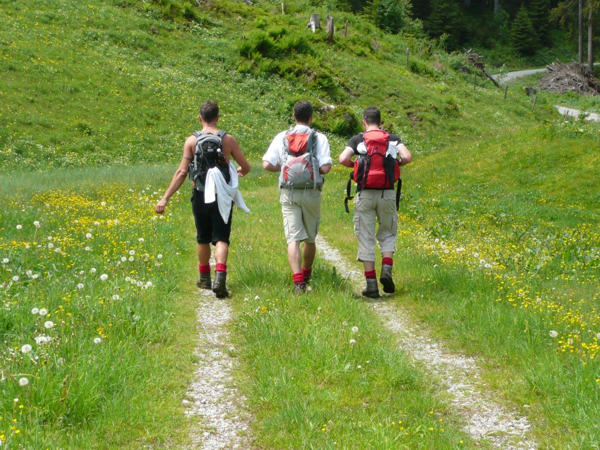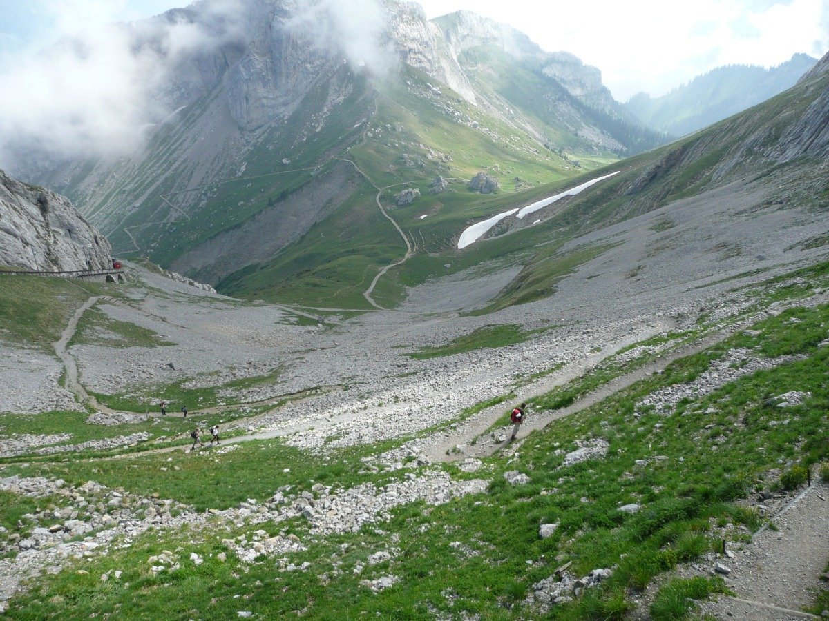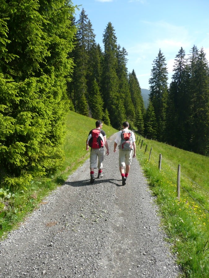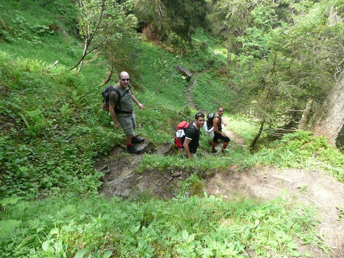 Früh sind wir heute unterwegs. Leider fahren die Postautos ab Sarnen erst spät, darum müssen wir mit dem Taxi bis ins Langis. Von dort wandern wir vorbei am Schwendi Kaltbad das Schlierental entlang bis zum Horweli. Von dort Richtung Schwand, wo wir bei einer verlassenen Alphütte Mittagsrast machen. Danach geht's weiter durch zerklüftetes Gebiet bis zur Lütholdsmatt.