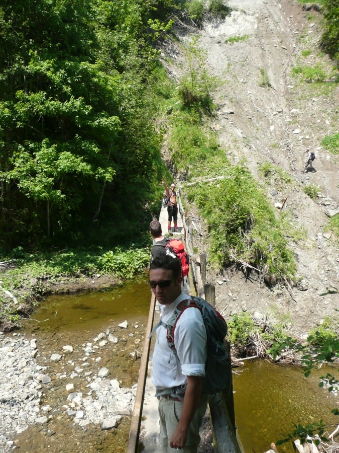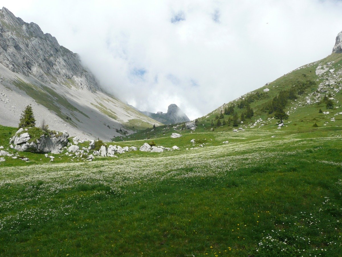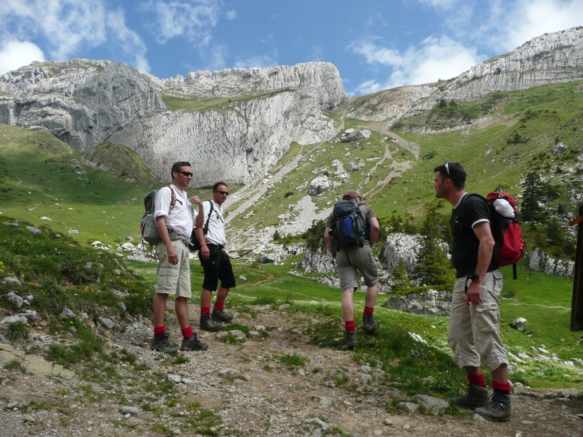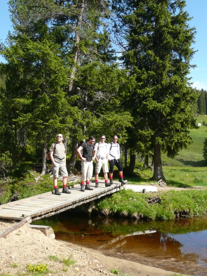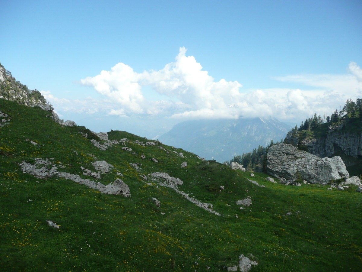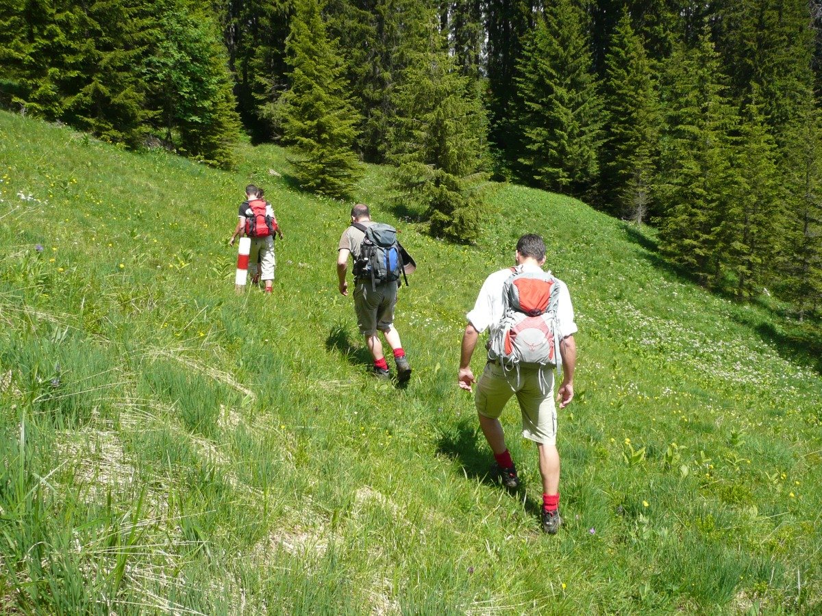 Früh sind wir heute unterwegs. Leider fahren die Postautos ab Sarnen erst spät, darum müssen wir mit dem Taxi bis ins Langis. Von dort wandern wir vorbei am Schwendi Kaltbad das Schlierental entlang bis zum Horweli. Von dort Richtung Schwand, wo wir bei einer verlassenen Alphütte Mittagsrast machen. Danach geht's weiter durch zerklüftetes Gebiet bis zur Lütholdsmatt.