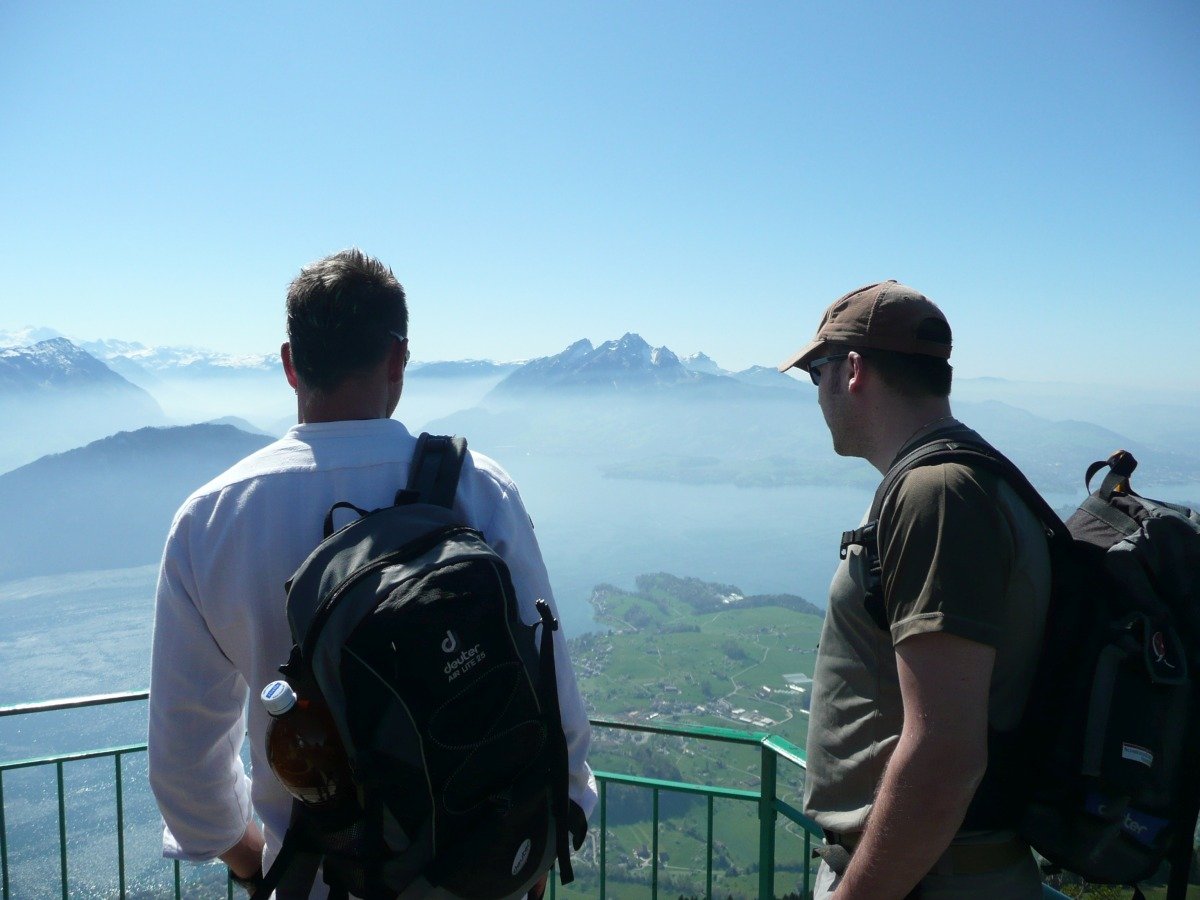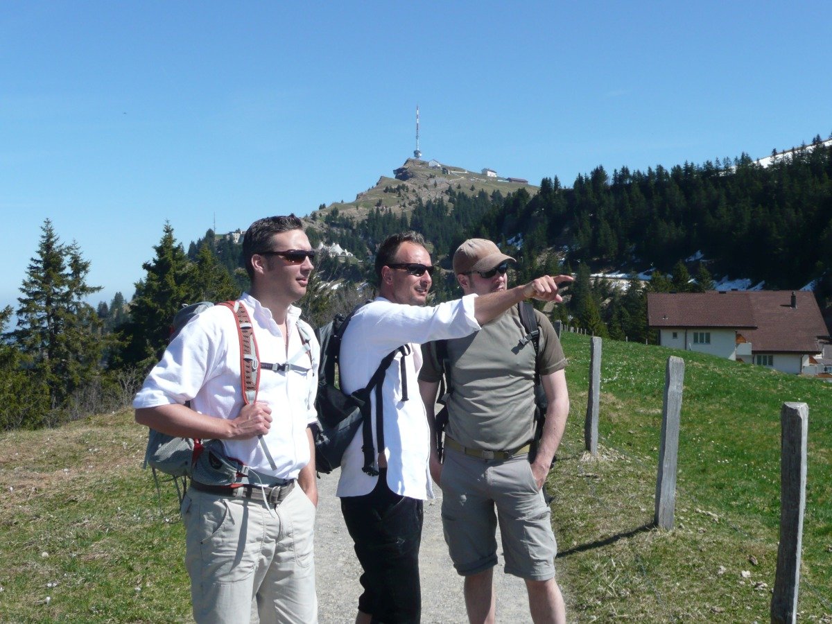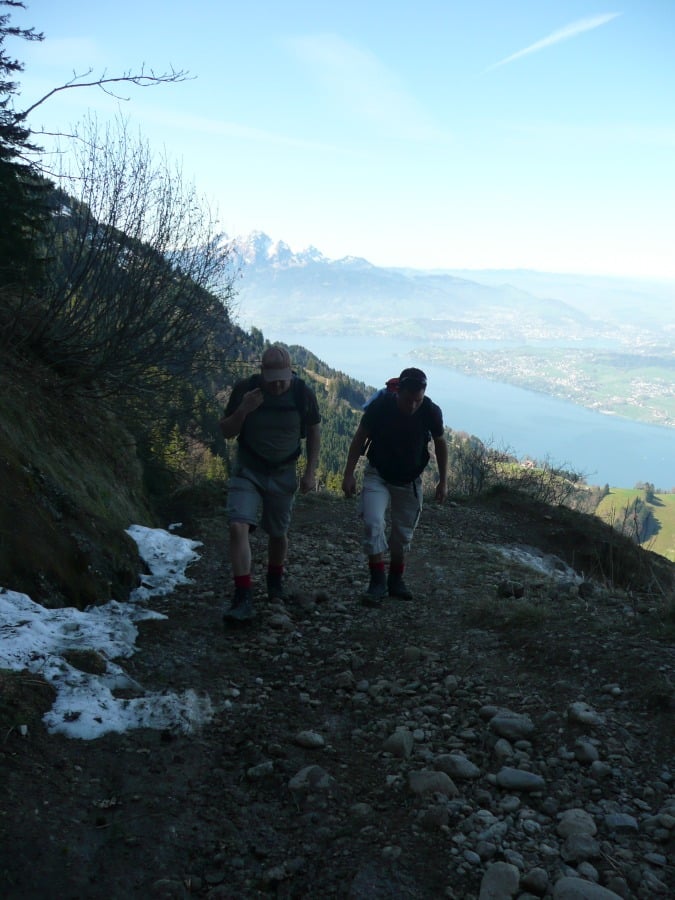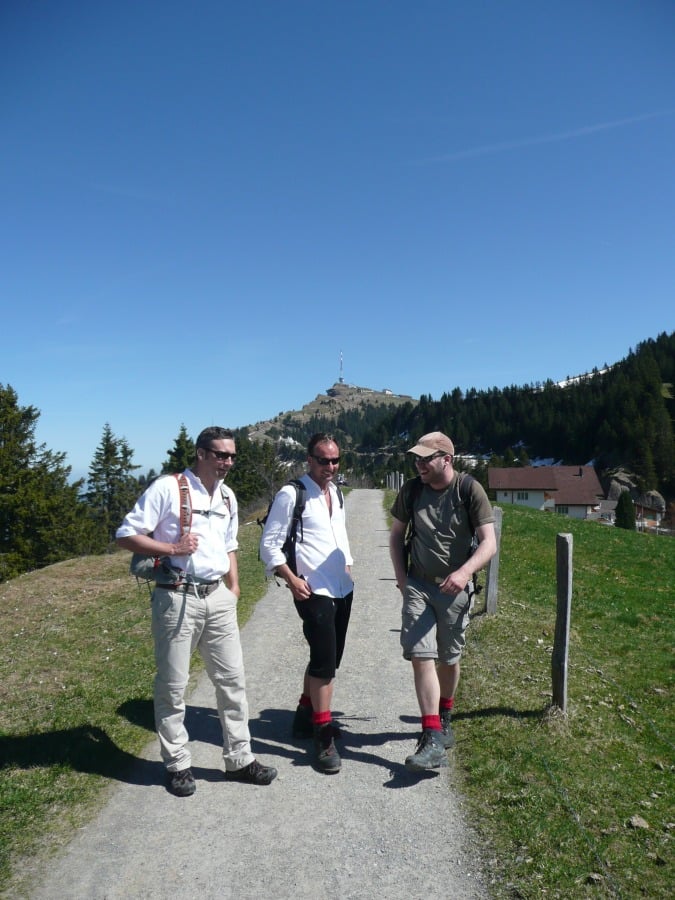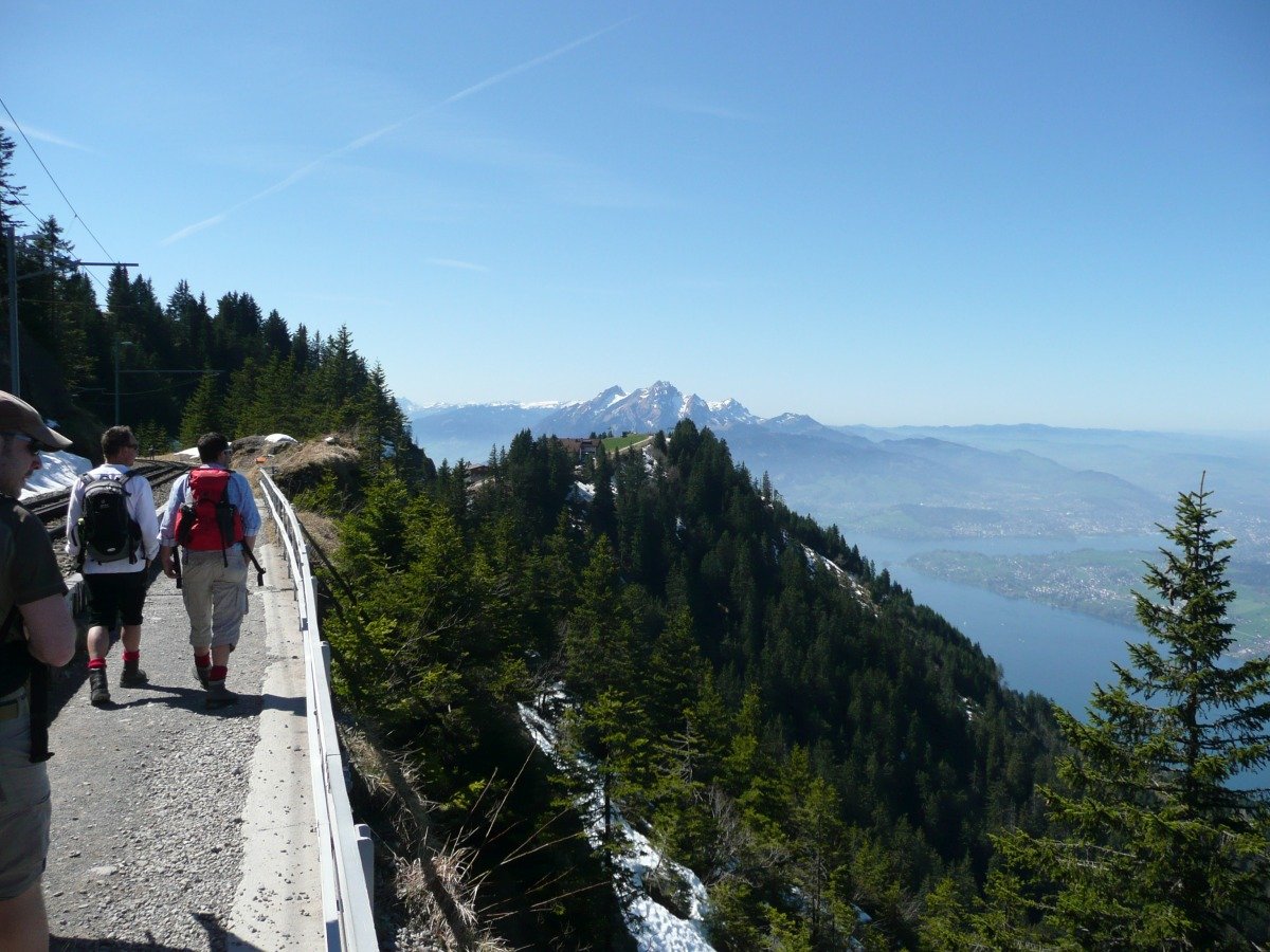 Mit der Seilbahn fahren wir auf die Seebodenalp. Dort nehmen wir erst mal einen Kaffee, bevor wir loswandern Richtung Rigi-Staffel. Nach dem steilen Aufstieg zur Rigi-Staffel genehmigen wir uns eine Hopfenmaltine, bevor wir auf dem Panoramaweg gemütlich zum Rigi-Känzeli spazieren.