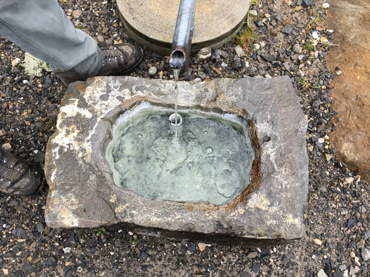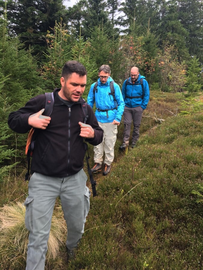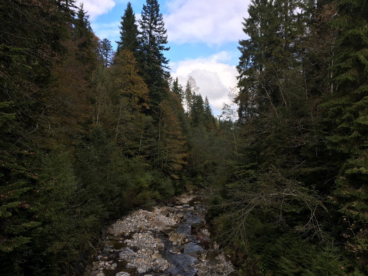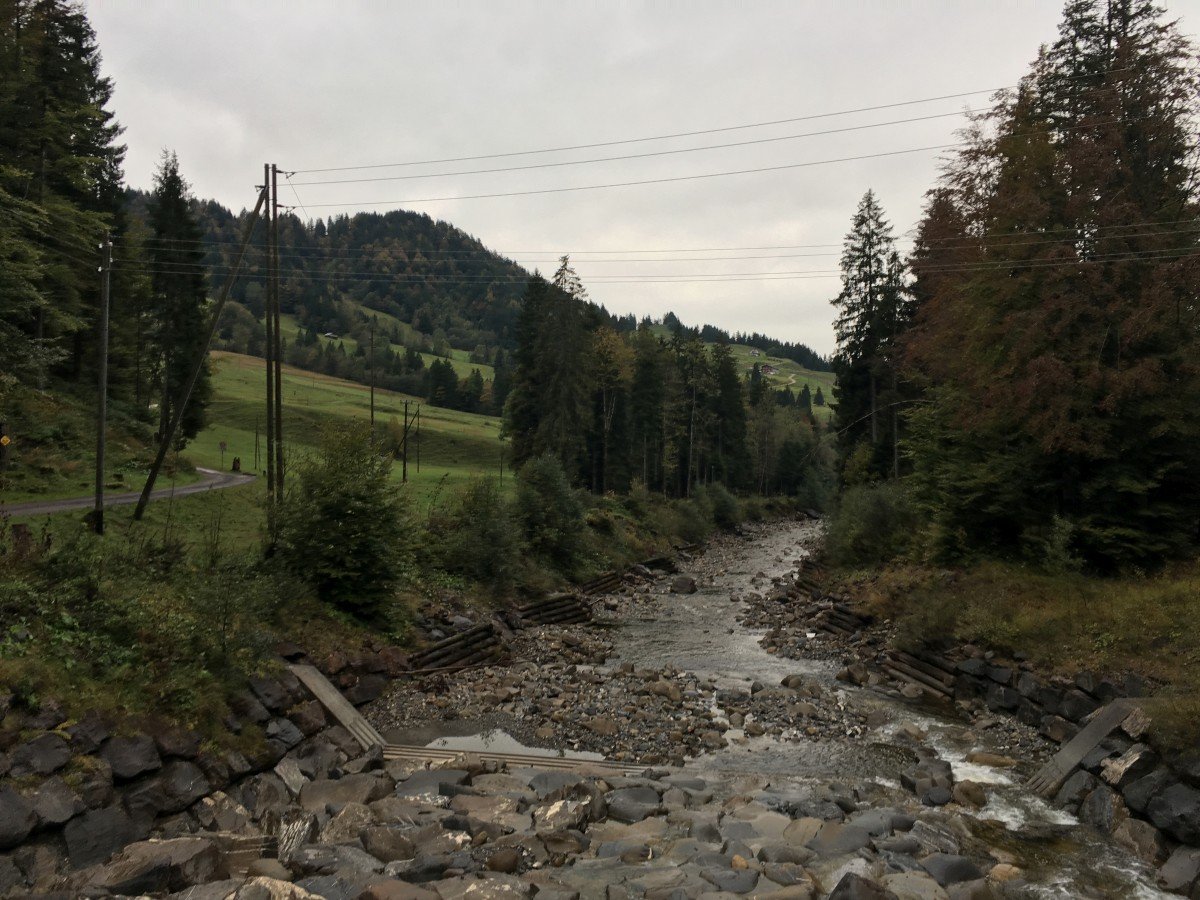 Petrus meinte es gut mit uns und der Regen hörte pünktlich zum Start unserer Wanderung auf. Vom Gfellen wanderten wir zu der alten, neu gefassten Schwefelquelle beim Schimbrig - Bad. An diesem Ort kurierten sich in früheren Tagen vermögende Gäste aus aller Welt. Die Bodenplatte des ehemaligen Kurhauses ist noch deutlich erkennbar.