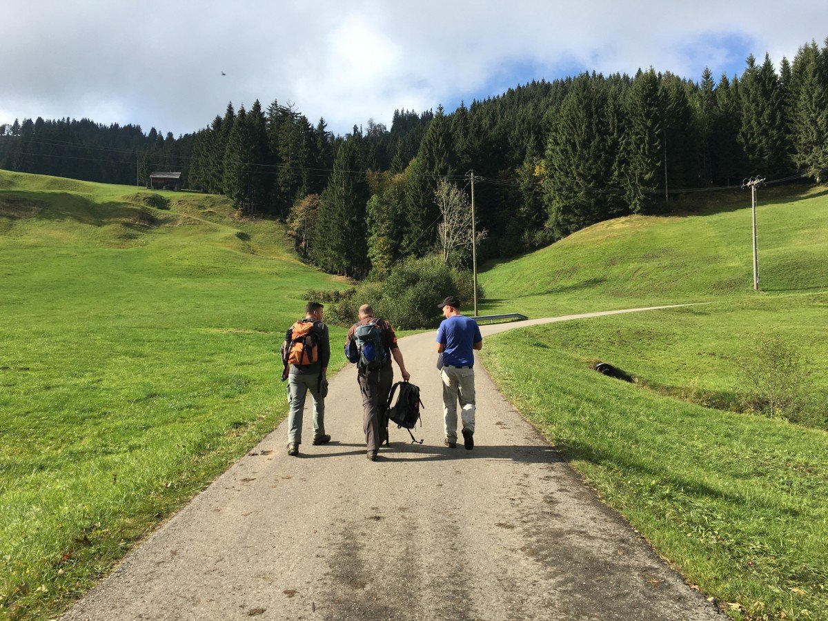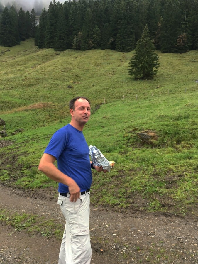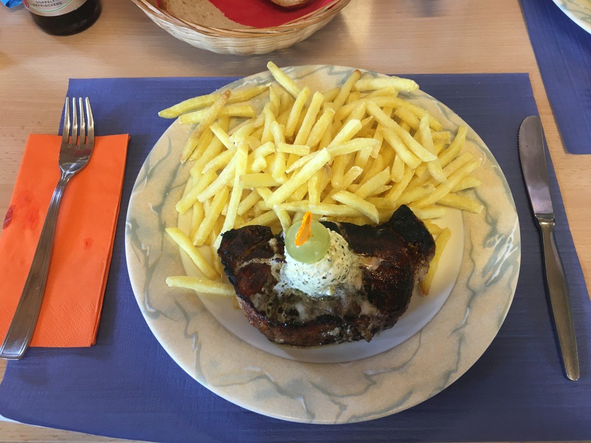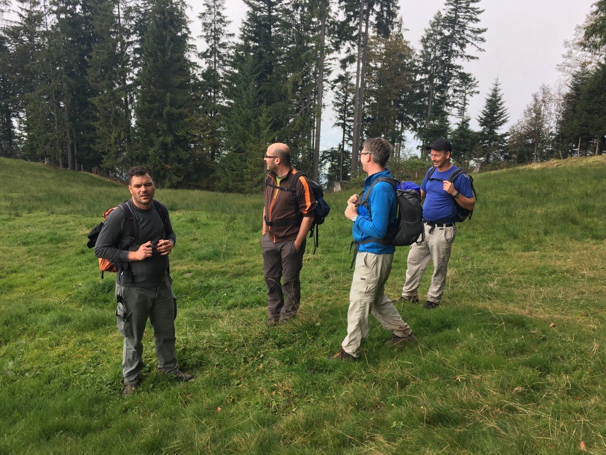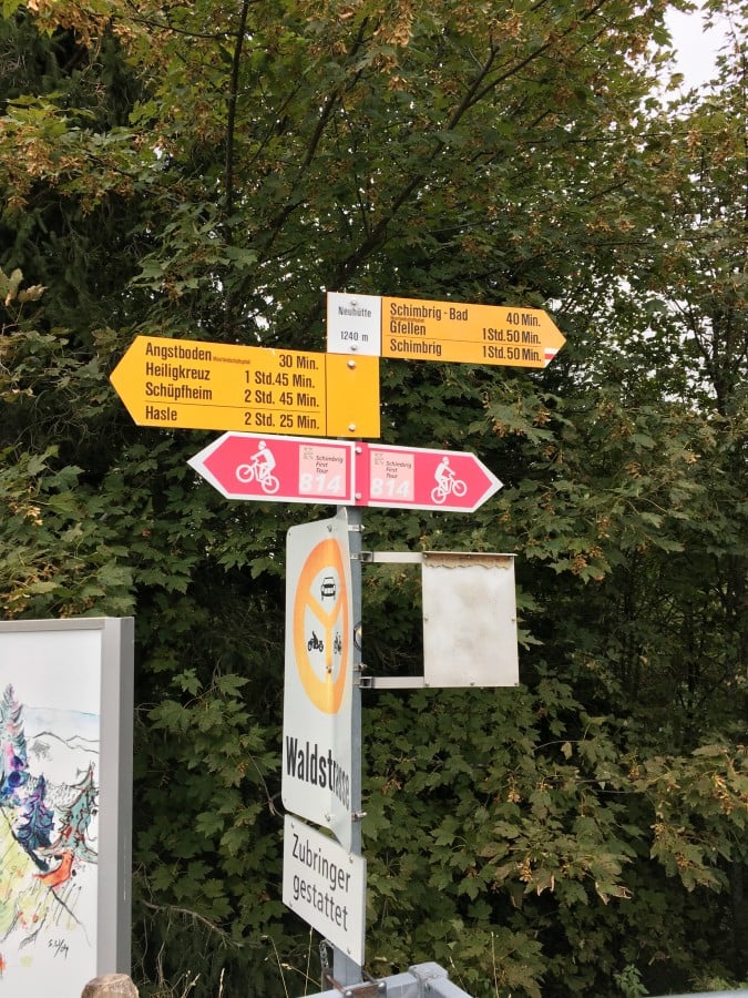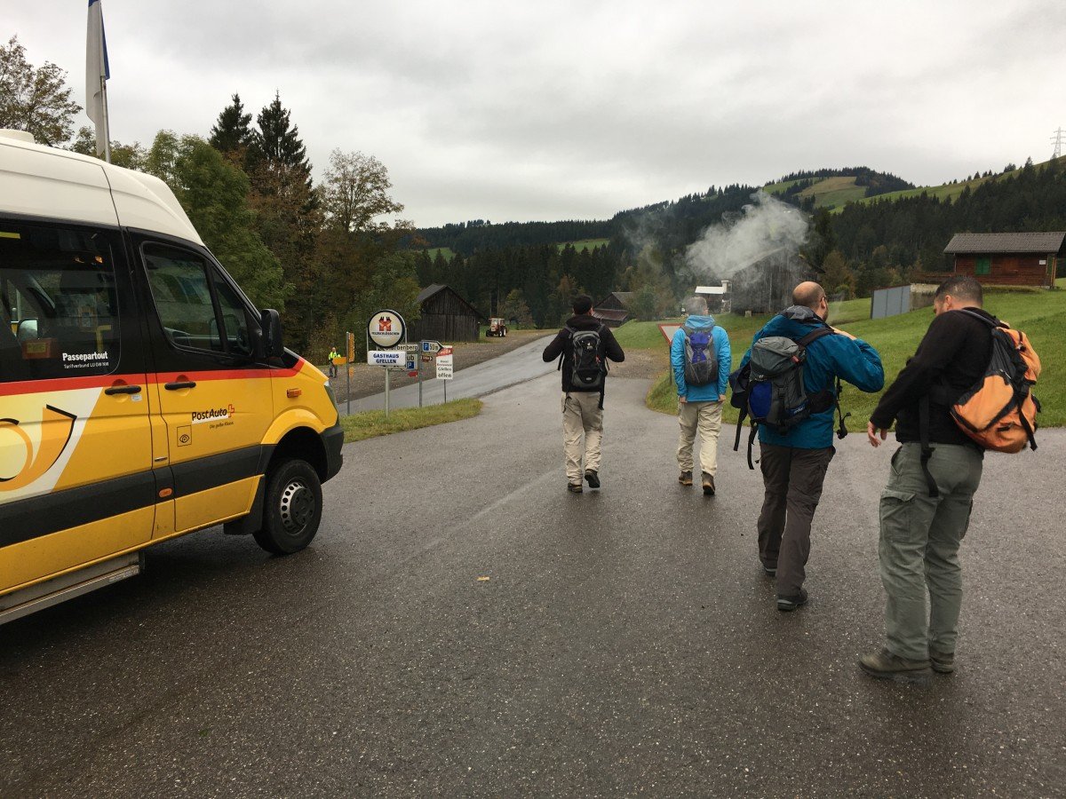 Weiter geht's Richtung dem Alpbeizli Neuhütte. Dort bestellen wir die bekannten Riesen-Steaks. Mit vollem Magen laufen wir Richtung Schwarzenbergchrüz zum Heiligkreuz First. Von dort ist es nur noch ein Katzensprung bis zum Ziel Heiligkreuz. Zurück geht's mit dem Postauto zum Bahnhof Entlebuch.