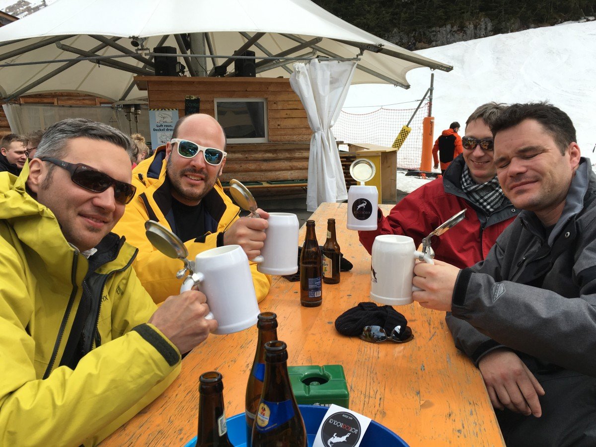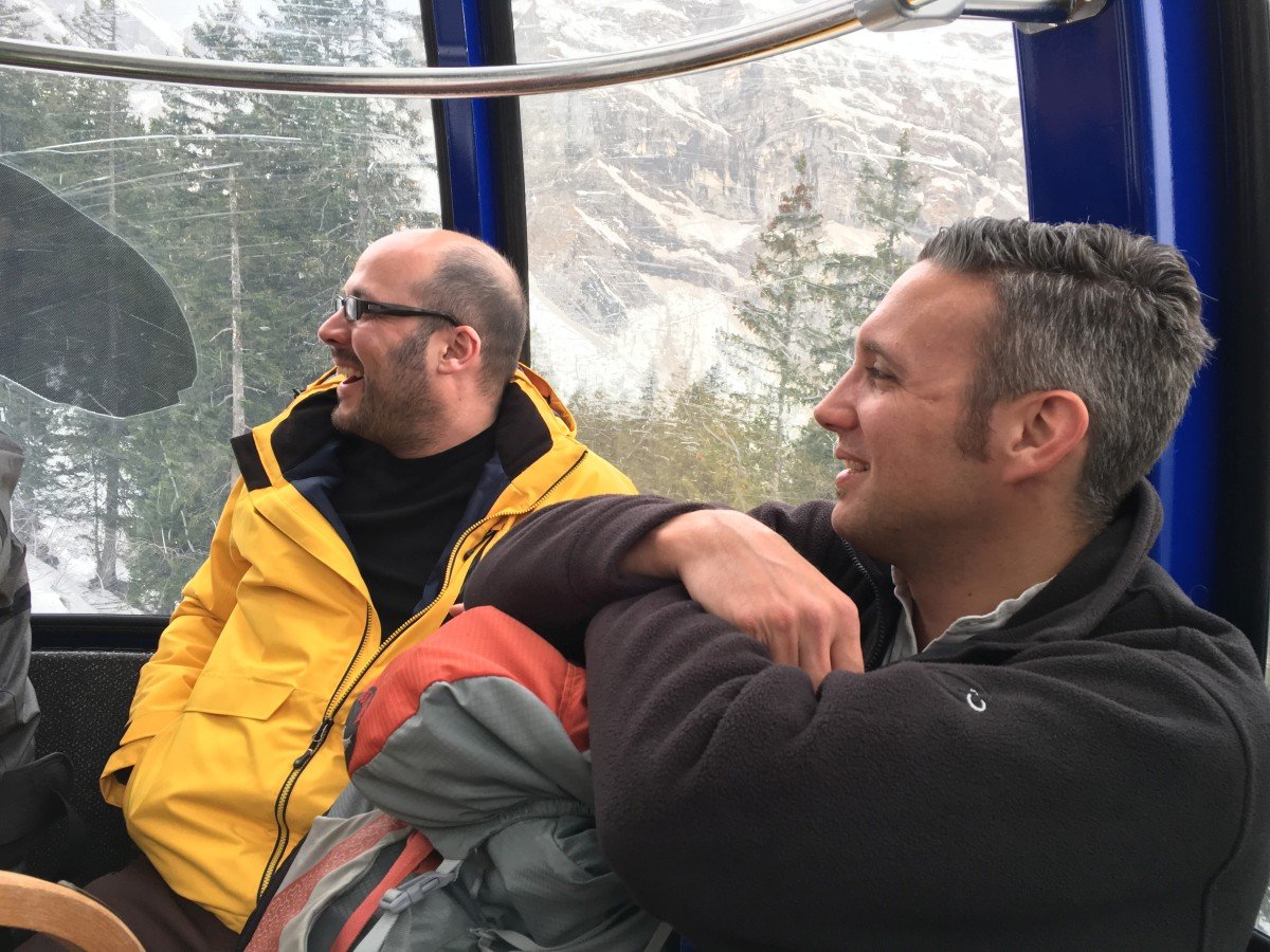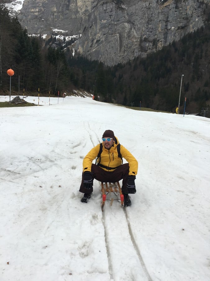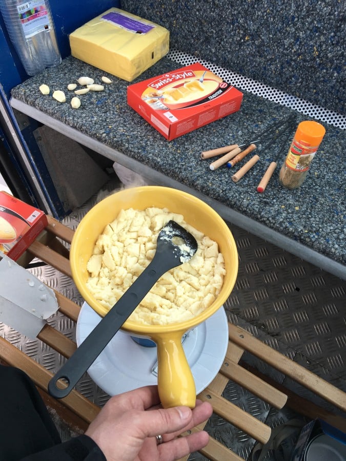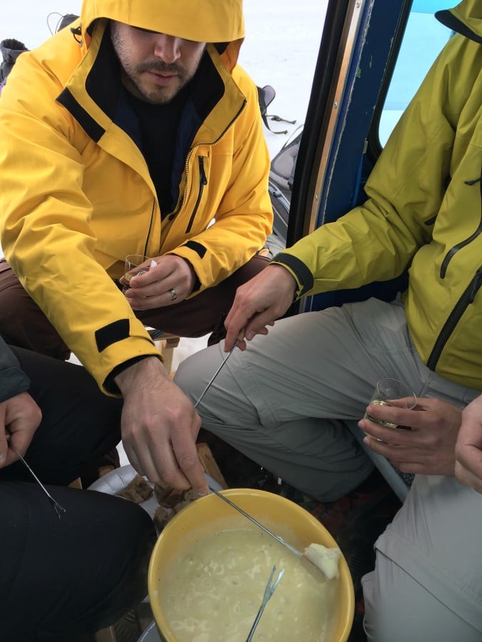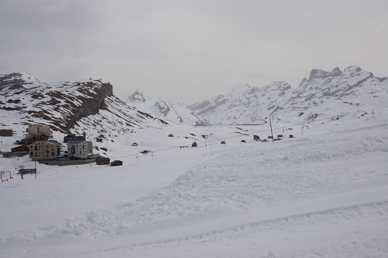 Nach kurzer Zeit wurde es uns zu bunt und wir wanderten dem See entlang wo wir zwei altgediente Gondeln fanden. Perfekt für ein feines Pistenfondue trotz bissigem Wind. Mit dem Schlitten gings danach über die Cheselen zurück in die Stöckalp.