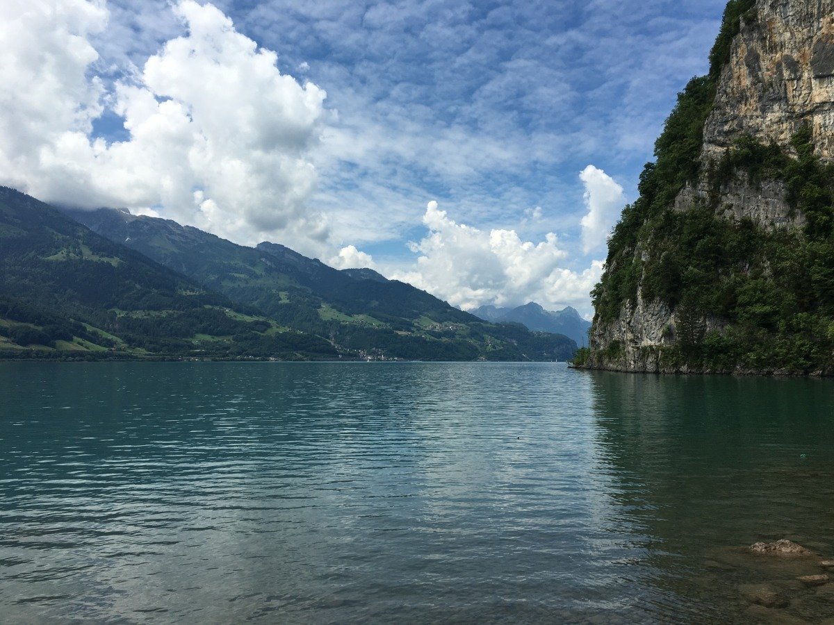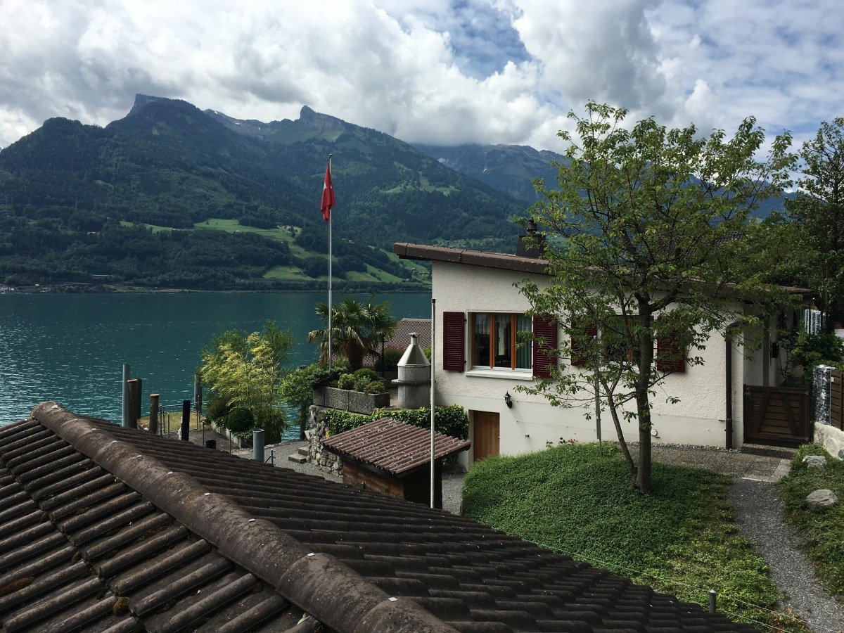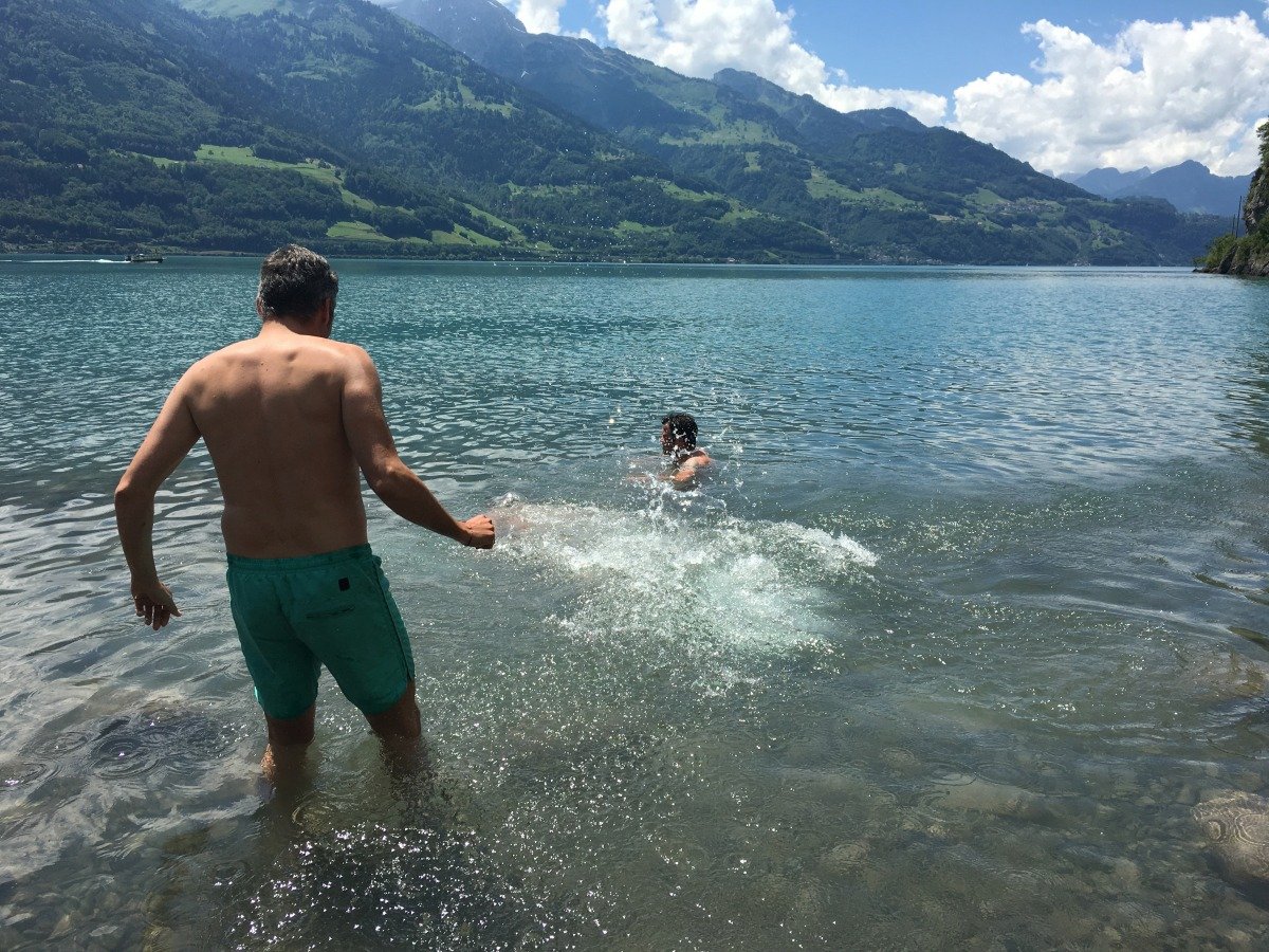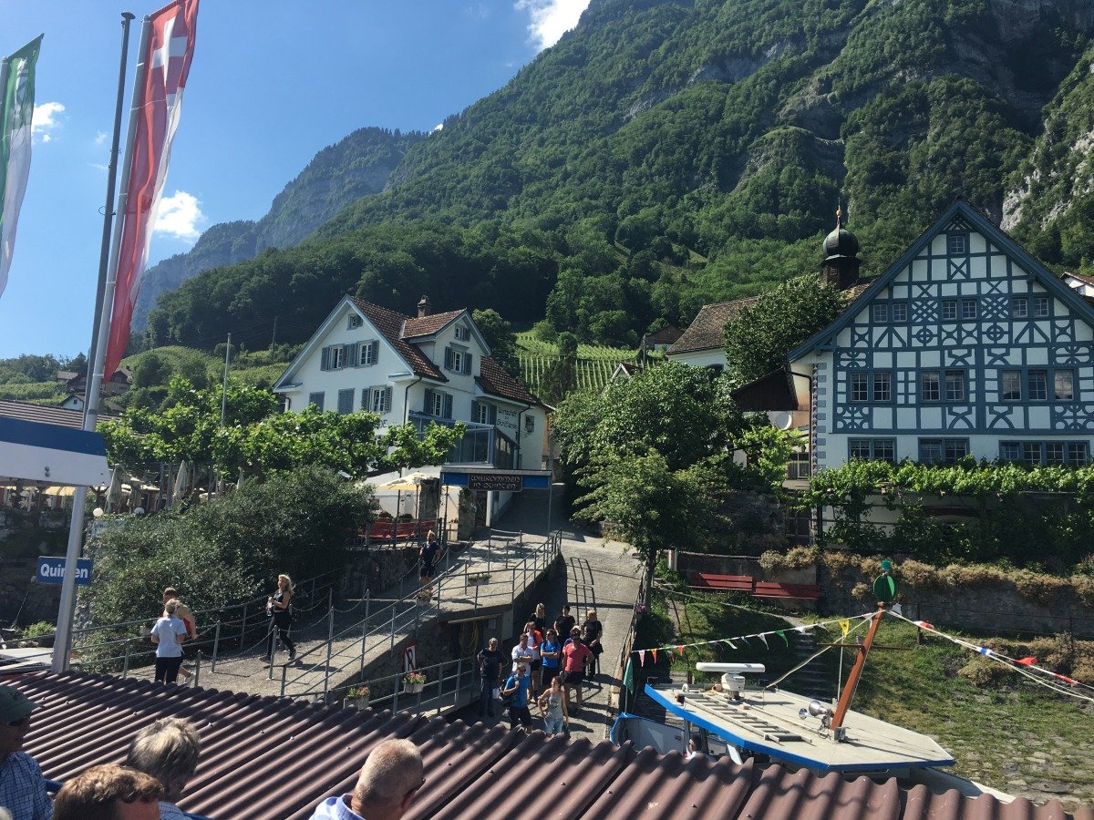 Quinten ist in seiner Bucht klimatisch begünstigt, so dass auch exotischere Pflanzen gedeihen. Im gastlichen Restaurant Schifflände machen wir kurz Rast. Danach wandern wir weiter Richtung Walenstadt, kommen aber nicht sehr weit. Die Schweizer - Familie Feuerstelle, wunderbar direkt am Seeufer gelegen ist perfekt für unser Mittagessen. Der Ort ist so schön und das Wetter so tüppig heiss, dass wir den Rest des Weges streichen und am späteren Nachmittag zurück nach Quinten gehen und mit dem Schiff nach Weesen fahren. Die Wanderung am Walensee hat uns sehr gut gefallen. Wir wollen irgendwann den zweiten Teil nach Walenstadt sicher auch noch gehen...