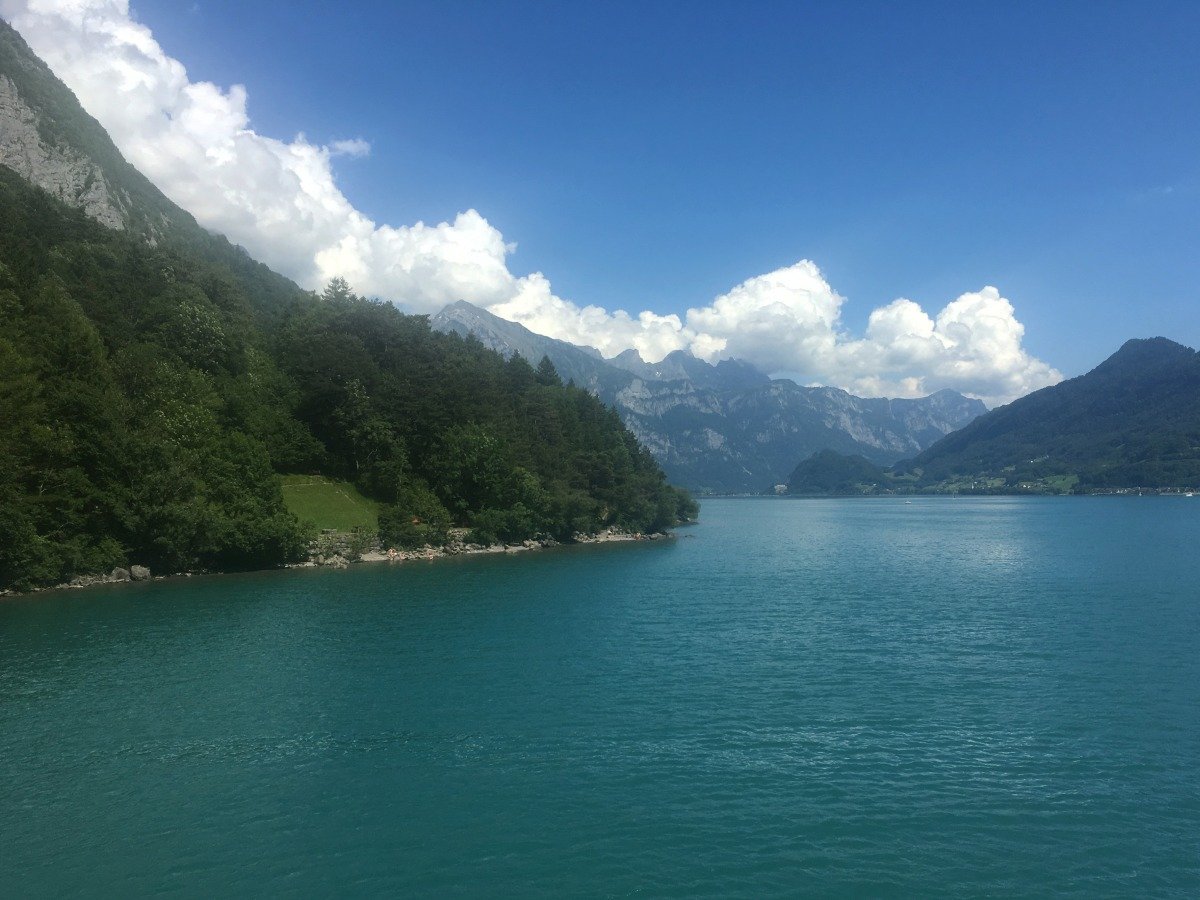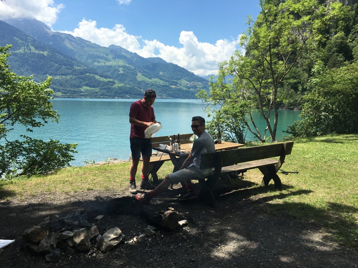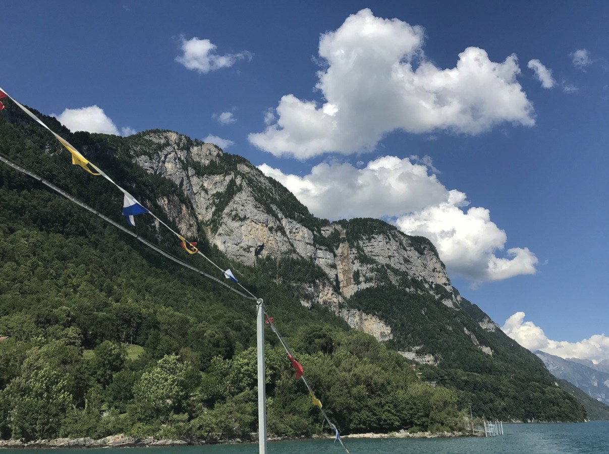 Quinten ist in seiner Bucht klimatisch begünstigt, so dass auch exotischere Pflanzen gedeihen. Im gastlichen Restaurant Schifflände machen wir kurz Rast. Danach wandern wir weiter Richtung Walenstadt, kommen aber nicht sehr weit. Die Schweizer - Familie Feuerstelle, wunderbar direkt am Seeufer gelegen ist perfekt für unser Mittagessen. Der Ort ist so schön und das Wetter so tüppig heiss, dass wir den Rest des Weges streichen und am späteren Nachmittag zurück nach Quinten gehen und mit dem Schiff nach Weesen fahren. Die Wanderung am Walensee hat uns sehr gut gefallen. Wir wollen irgendwann den zweiten Teil nach Walenstadt sicher auch noch gehen...