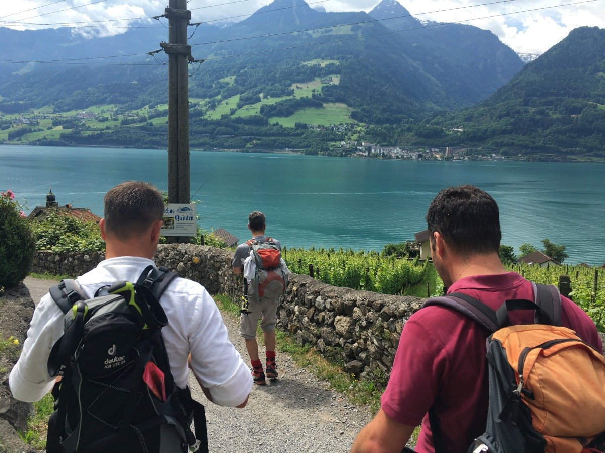 Unsere Tour beginnt im schönen Dörfchen Weesen. Immer am Ufer des Walensees entlang marschieren wir über Fli Richtung Betlis. In Betlis wandern wir an der Burgruine Stralegg vorbei zu den Seerenbach- Wasserfällen. Das Wasser sammelt sich im Innern der Berge und tritt an dieser Stelle spektakulär aus der Felswand. Weiter gehts Richtung Quinten. Kurz vor Quinten verläuft der Weg mit grandioser Aussicht mitten durch die Felswände, hoch über dem Walensee. Alle Stellen sind mit Geländern gut gesichert. In Quinten bewundern wir die üppige Vegetation mit Weinreben, Kiwis und Feigenbäumen.
