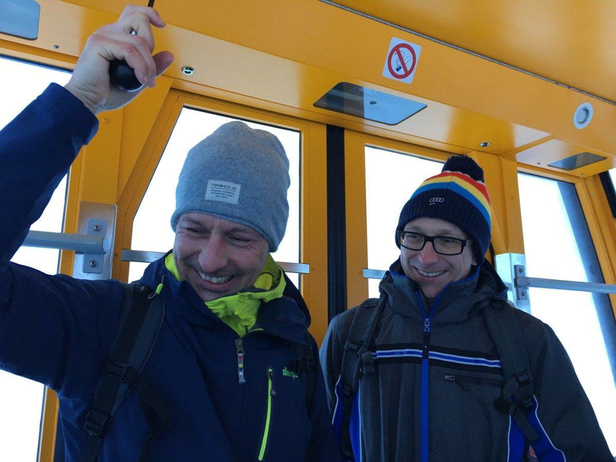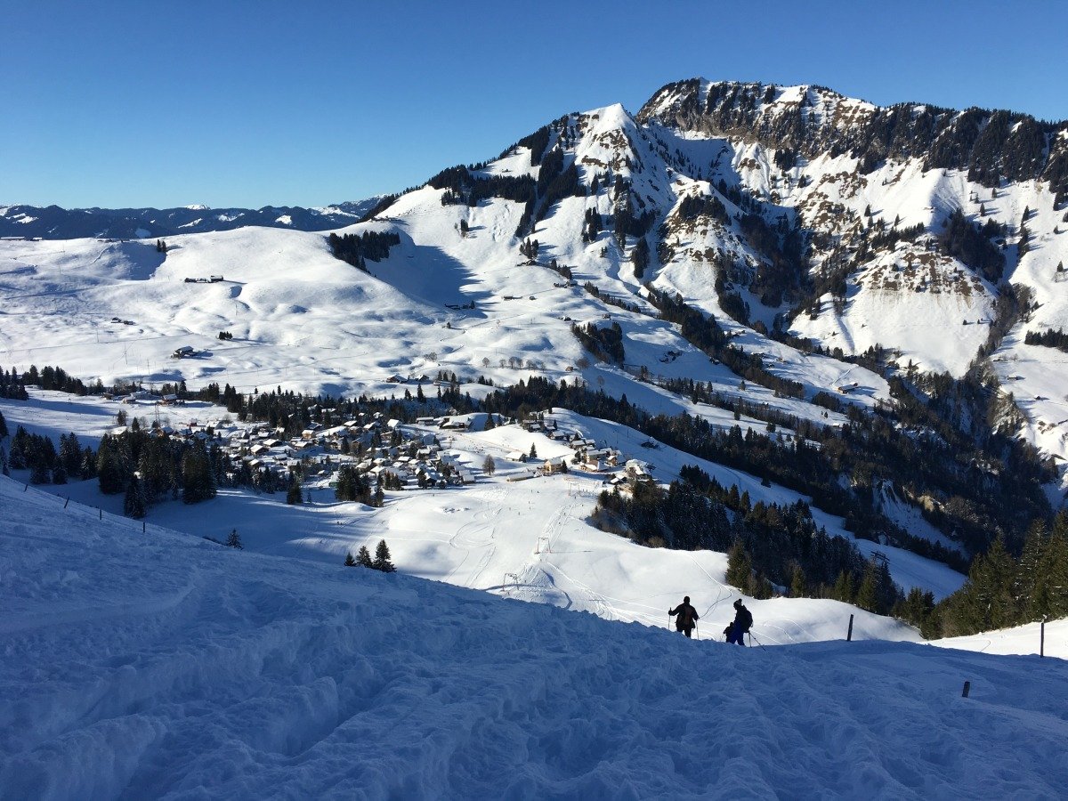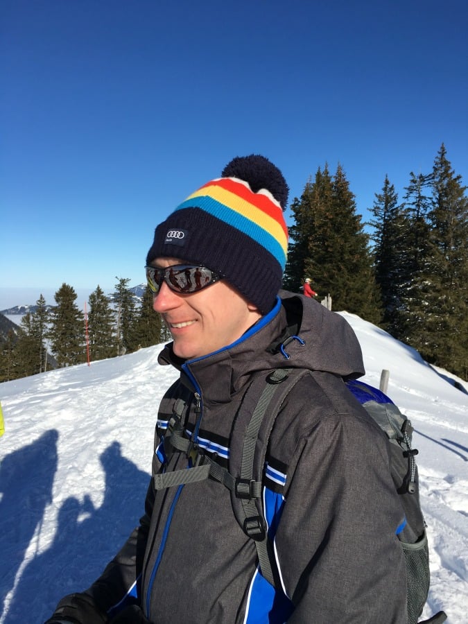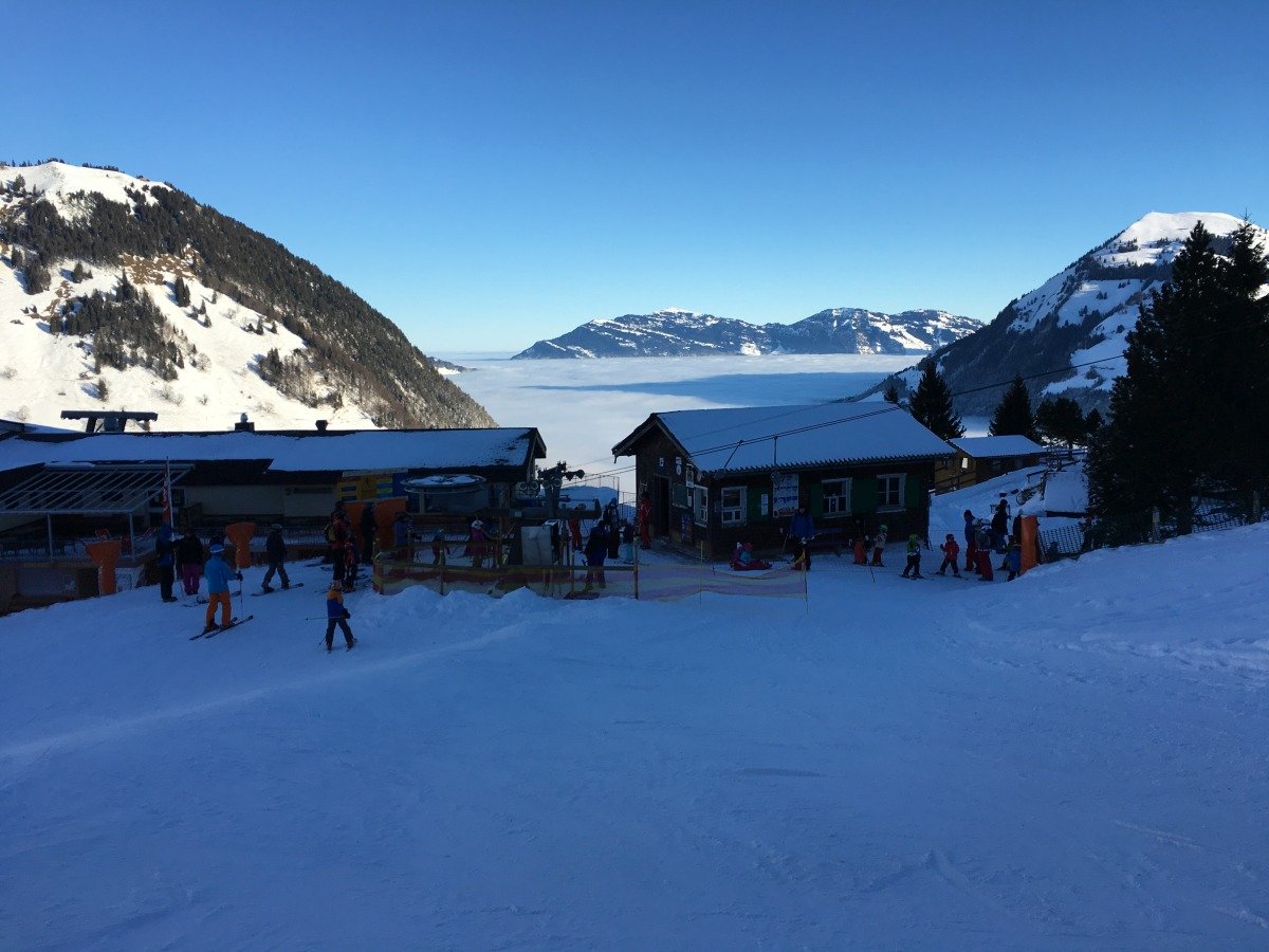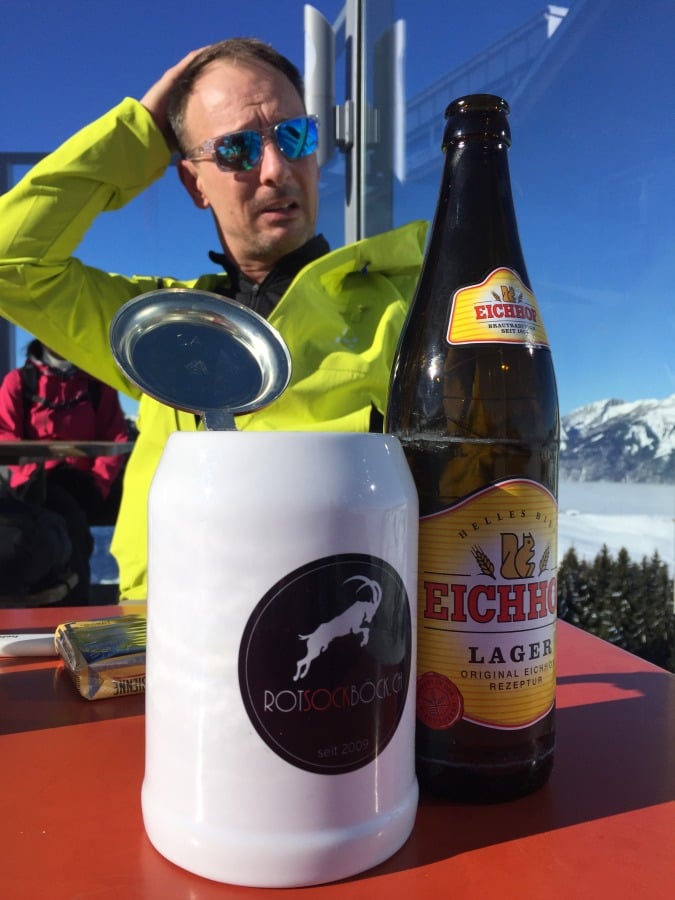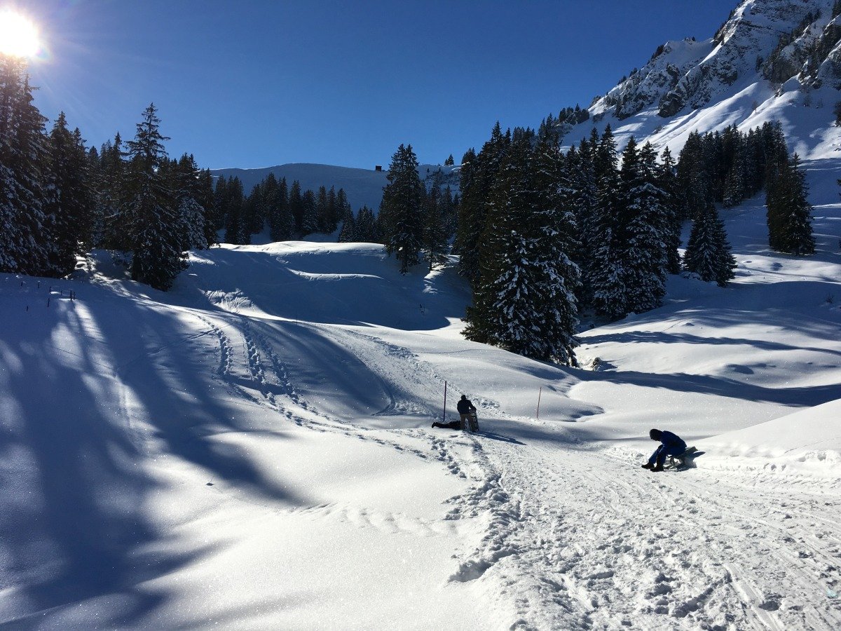 Auf der Gummenalp geniessen wir die tolle Sonnenterrasse bei Essen und Trinken. Am Nachmittag laufen wir weiter über den Vordergummen und den Wirzweligrat bis zum Horn. Der Abstieg durch den tiefen Schnee nach Wirzweli hinunter ist eine grosse Gaudi mit den Schneeschuhen. Im Tal angekommen lassen wir die Tour im gemütlichen Restaurant Arviblick bei ein paar Bier ausklingen.