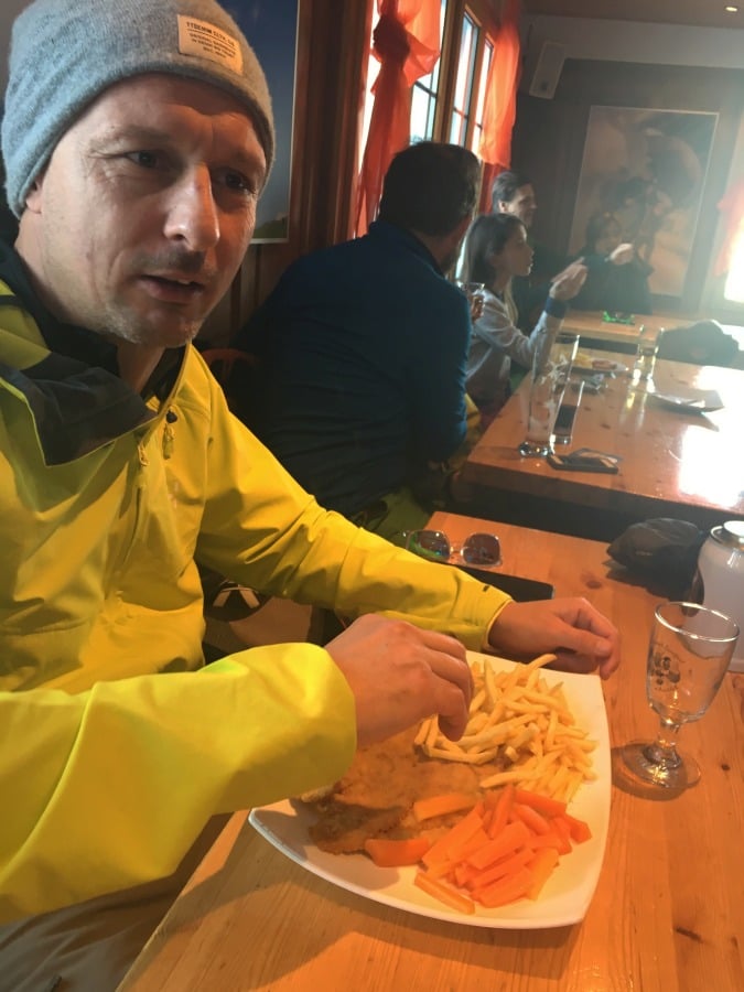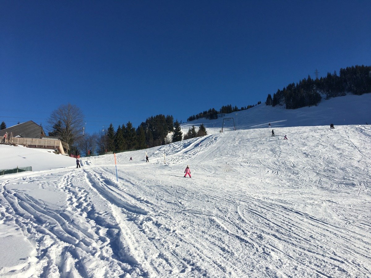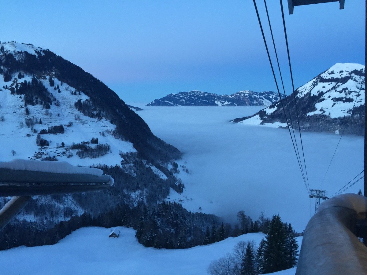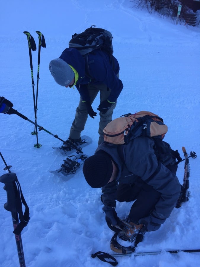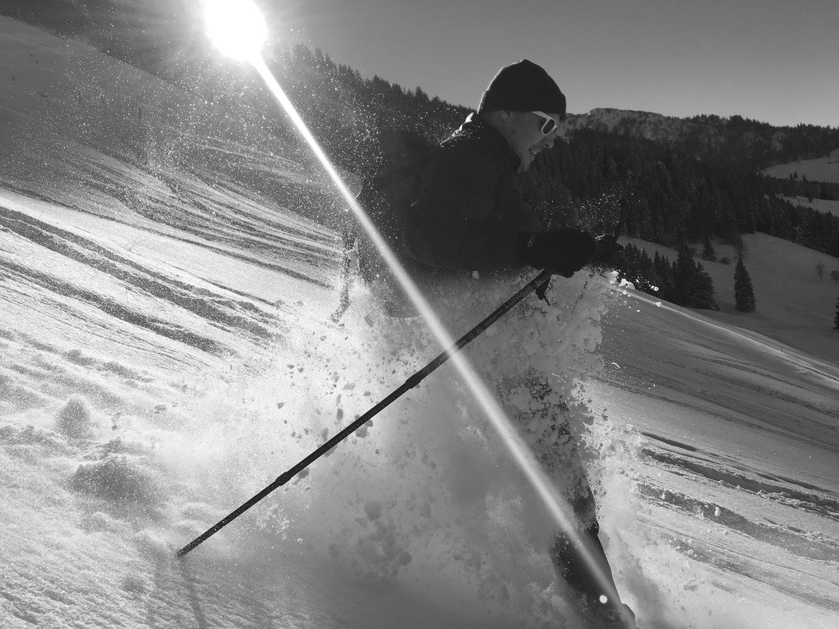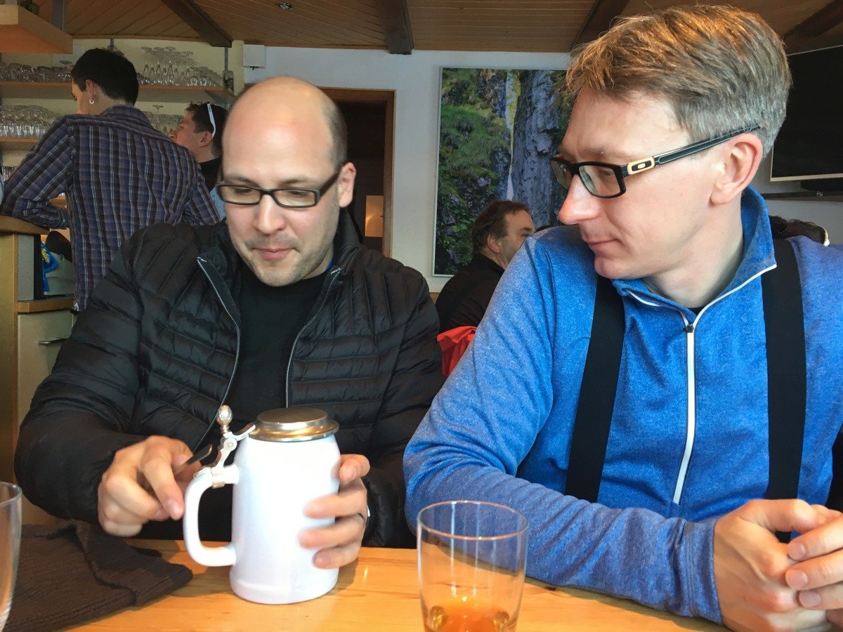 Auf der Gummenalp geniessen wir die tolle Sonnenterrasse bei Essen und Trinken. Am Nachmittag laufen wir weiter über den Vordergummen und den Wirzweligrat bis zum Horn. Der Abstieg durch den tiefen Schnee nach Wirzweli hinunter ist eine grosse Gaudi mit den Schneeschuhen. Im Tal angekommen lassen wir die Tour im gemütlichen Restaurant Arviblick bei ein paar Bier ausklingen.