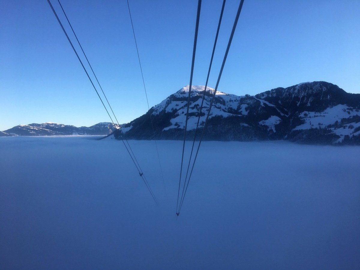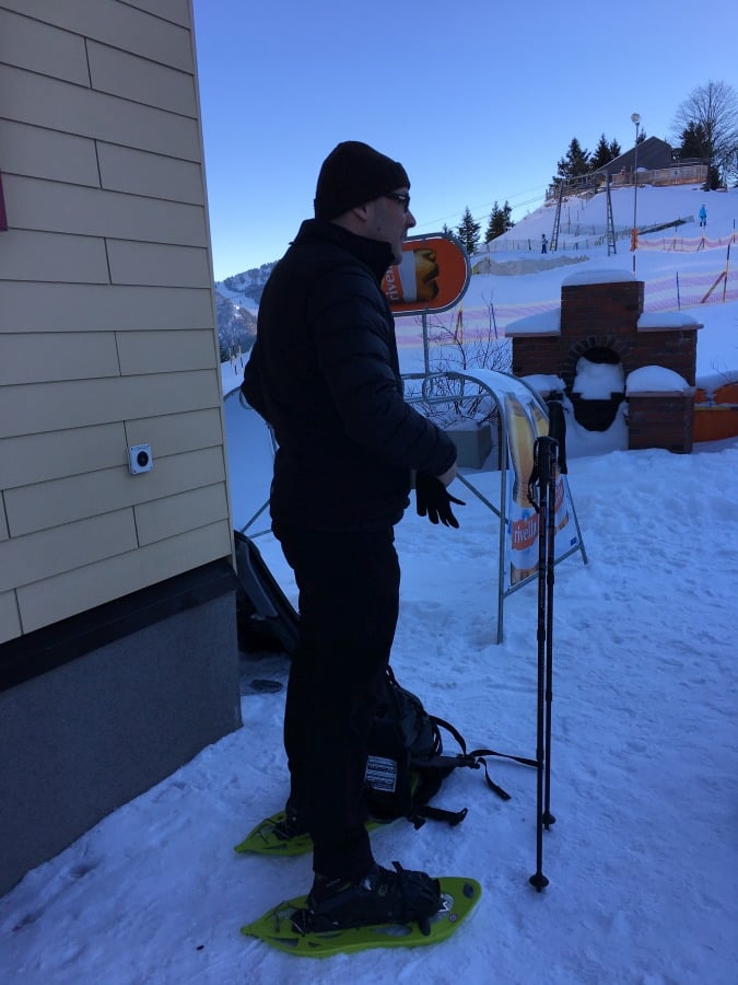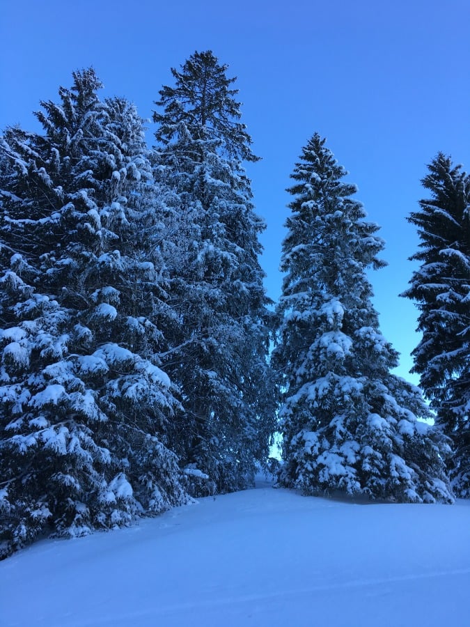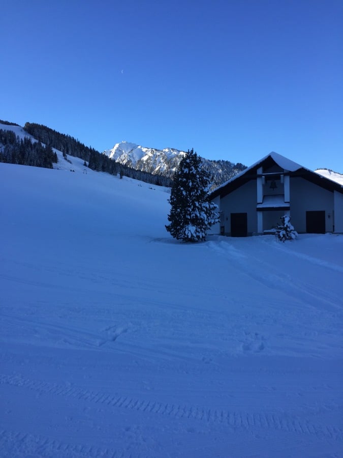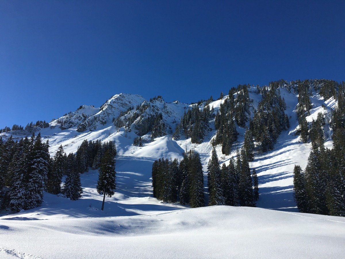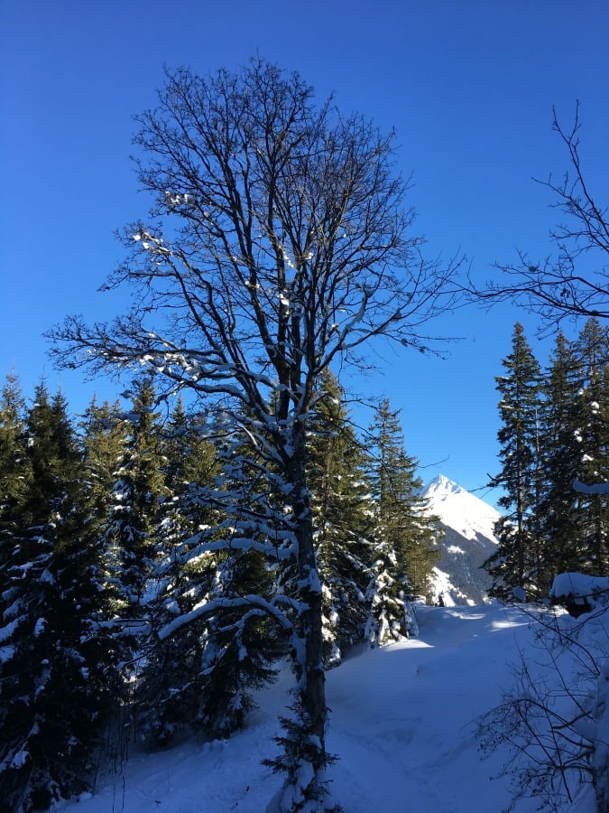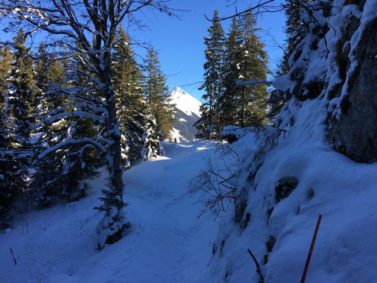 Wieder einmal fahren wir aufs schöne Wirzweli. Diesmal wollen wir eine Schneeschuhtour unternehmen. Nach einem kurzen Kaffeehalt im Restaurant Arviblick, laufen wir los Richtung Dürrenbodenwald. Das Wetter ist traumhaft, aber die Temperaturen eisig kalt. Beim Dürrenboden steigen wir hinauf zu den Ronenhütten und von dort gemächlich bis zur Gummenalp.