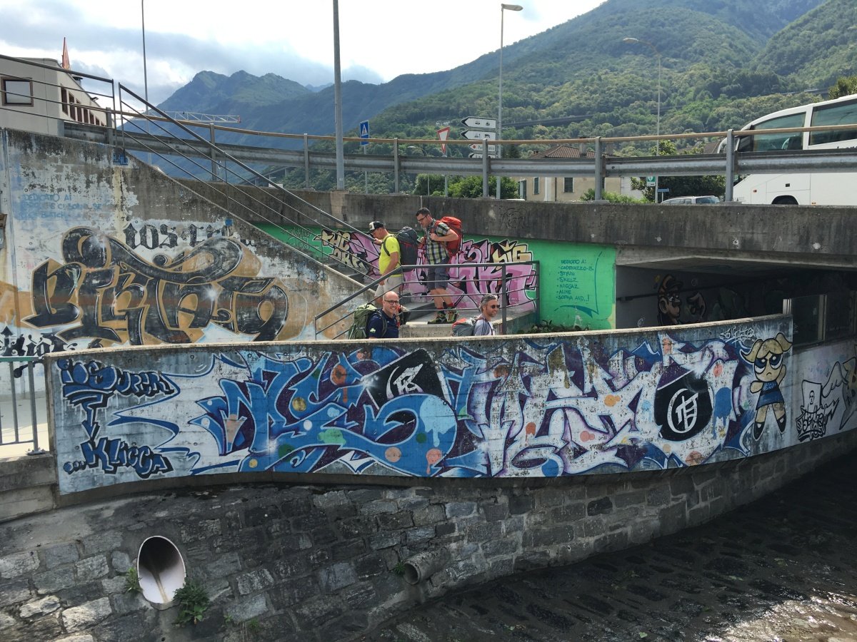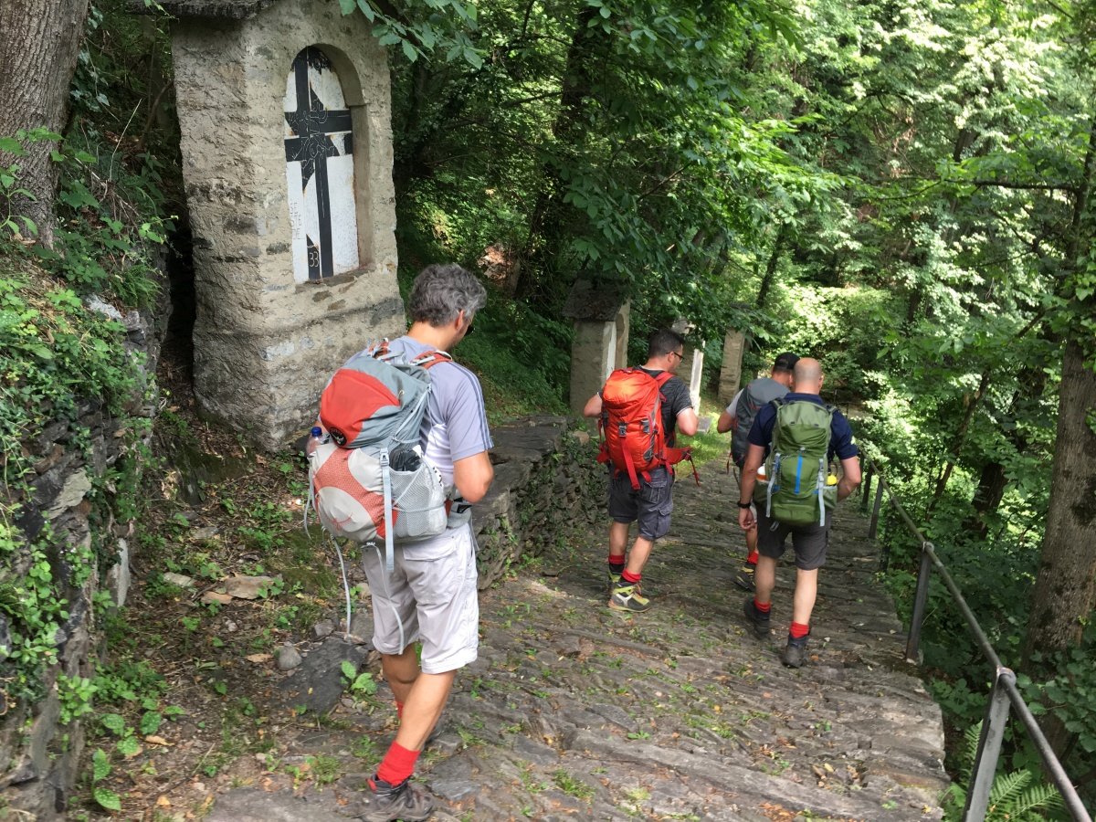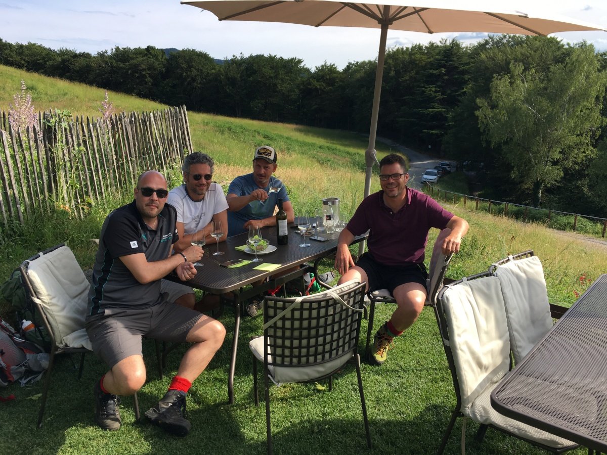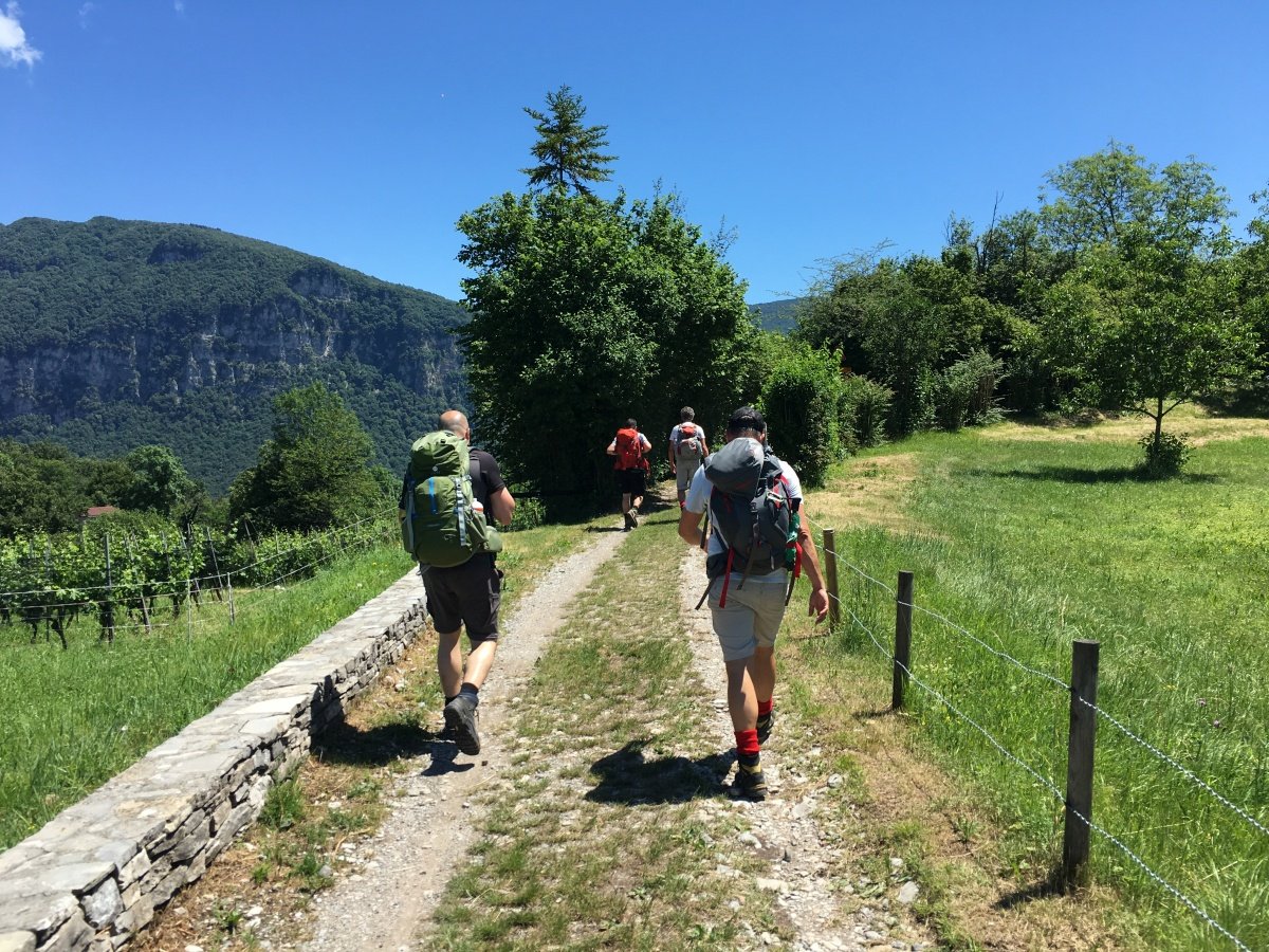Kaum zu glauben, fast auf den Tag 10 Jahre ist es her. Unsere erste Tour 2009 auf die Fräkmüntegg. Heute starten wir unsere Jubiläumstour, welche uns von Cadenazzo über viele Hügel und Berge bis nach Mendrisio führen wird. Der Start in Cadenazzo ist gleich ziemlich heftig. Nach kurzem Einlaufen erklimmen wir den Cima di Dentro bei brütender und schwüler Hitze. Wie frisch geduscht kommen wir oben an und machen eine kurze Mittagspause. Danach gehts noch eine Stunde bergab bis zu unserer ersten Unterkunft in Isone. Früh sind wir dort und durstig sind wir auch. Der Abend wird lustig und spät. Was wir natürlich am nächsten Tag beim Anstieg zum Gola di Lago sofort bereuen. Doch die wunderschöne Ebene mit Sümpfen, Farnen und vielen Birken lässt uns den Kater wieder vergessen. Nach einer kurzen Rast in der Alpe Sta Maria di Lago wandern wir auf tollem Weg zum Aussichtspunkt auf dem Monte di Bigorio, mit 1160müM den höchsten Punkt unserer Tour. Das Panorama ist fantastisch und wir sehen die ganze Route der nächsten Tage direkt vor uns liegen. Beim langen und anstrengenden Abstieg hinunter nach Tesserete werden wir kurz nach dem Kloster Convento Sta Maria von einem netten Weinbauern spontan auf ein Gläschen seiner neusten Weinschöpfung eingeladen. Nach ein bisschen Weinkunde und ausgiebigem Probieren gehts erstaunlich locker weiter Richtung Lugano - Savosa. Kurz vor Savosa übersteigen wir noch den Hügel San Bernardo. Dabei gibt uns die grosse Hitze den Rest und wir sind alle froh, als wir in Savosa in der Jugendherberge eintreffen. Nach einem erfrischenden Bad im Pool gehts ins nahe gelegene Ristorante Pizzeria La Ticinella, wo wir hervorragend bewirtet werden. Absolut zu empfehlen.