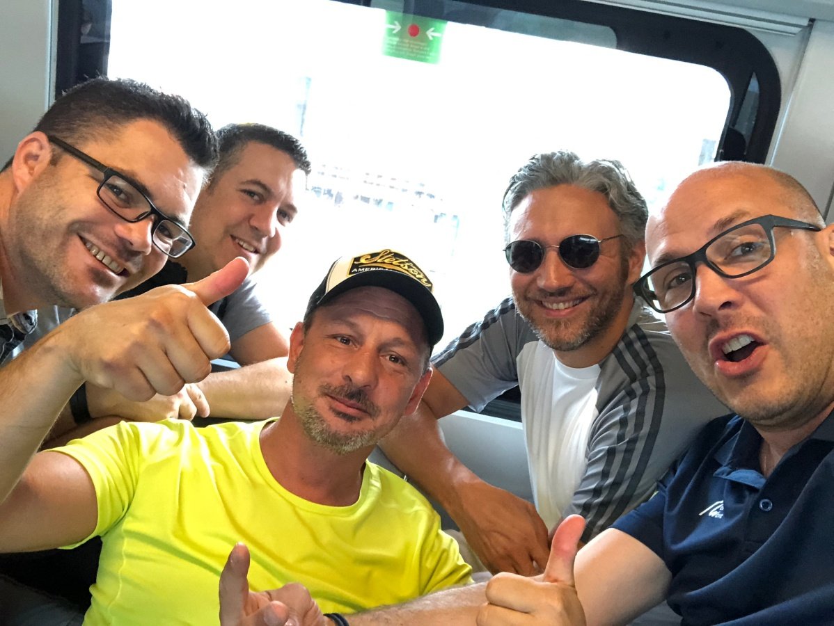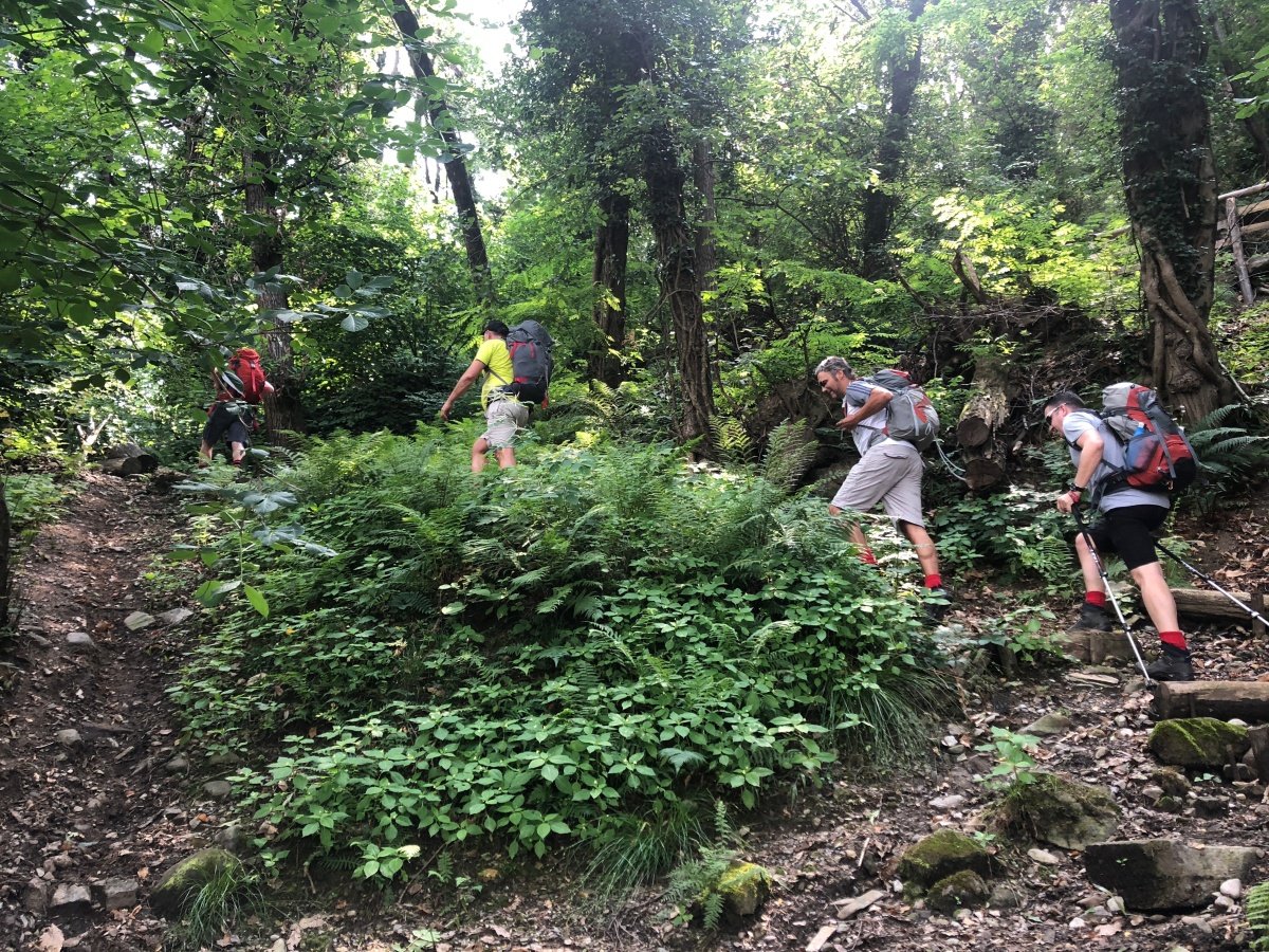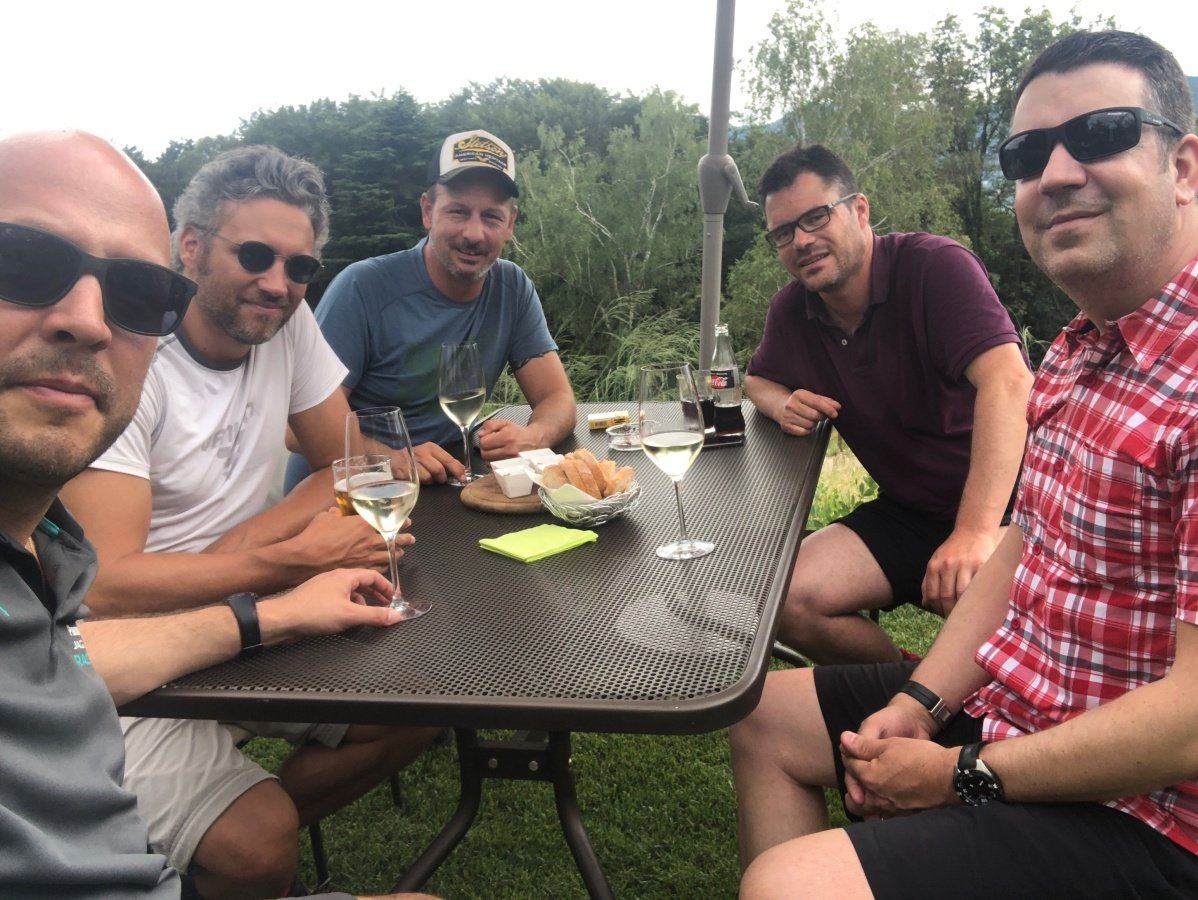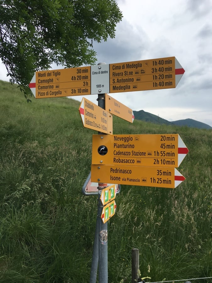 Kaum zu glauben, fast auf den Tag 10 Jahre ist es her. Unsere erste Tour 2009 auf die Fräkmüntegg. Heute starten wir unsere Jubiläumstour, welche uns von Cadenazzo über viele Hügel und Berge bis nach Mendrisio führen wird. Der Start in Cadenazzo ist gleich ziemlich heftig. Nach kurzem Einlaufen erklimmen wir den Cima di Dentro bei brütender und schwüler Hitze. Wie frisch geduscht kommen wir oben an und machen eine kurze Mittagspause. Danach gehts noch eine Stunde bergab bis zu unserer ersten Unterkunft in Isone. Früh sind wir dort und durstig sind wir auch. Der Abend wird lustig und spät. Was wir natürlich am nächsten Tag beim Anstieg zum Gola di Lago sofort bereuen. Doch die wunderschöne Ebene mit Sümpfen, Farnen und vielen Birken lässt uns den Kater wieder vergessen. Nach einer kurzen Rast in der Alpe Sta Maria di Lago wandern wir auf tollem Weg zum Aussichtspunkt auf dem Monte di Bigorio, mit 1160müM den höchsten Punkt unserer Tour. Das Panorama ist fantastisch und wir sehen die ganze Route der nächsten Tage direkt vor uns liegen. Beim langen und anstrengenden Abstieg hinunter nach Tesserete werden wir kurz nach dem Kloster Convento Sta Maria von einem netten Weinbauern spontan auf ein Gläschen seiner neusten Weinschöpfung eingeladen. Nach ein bisschen Weinkunde und ausgiebigem Probieren gehts erstaunlich locker weiter Richtung Lugano - Savosa. Kurz vor Savosa übersteigen wir noch den Hügel San Bernardo. Dabei gibt uns die grosse Hitze den Rest und wir sind alle froh, als wir in Savosa in der Jugendherberge eintreffen. Nach einem erfrischenden Bad im Pool gehts ins nahe gelegene Ristorante Pizzeria La Ticinella, wo wir hervorragend bewirtet werden. Absolut zu empfehlen.