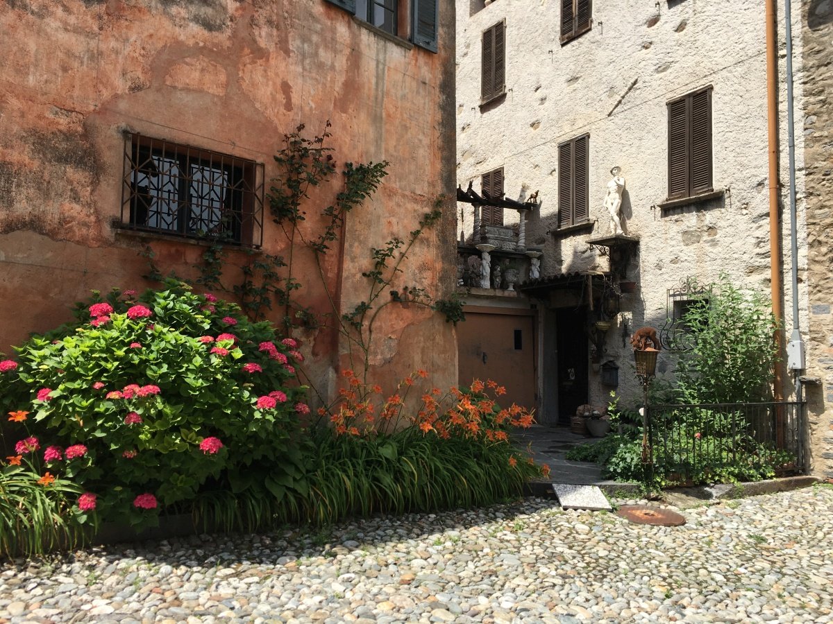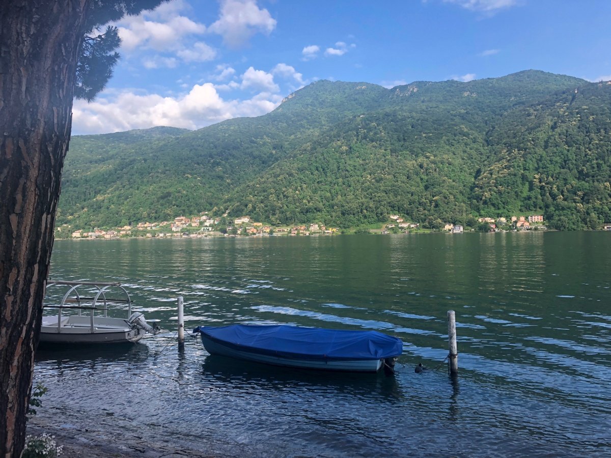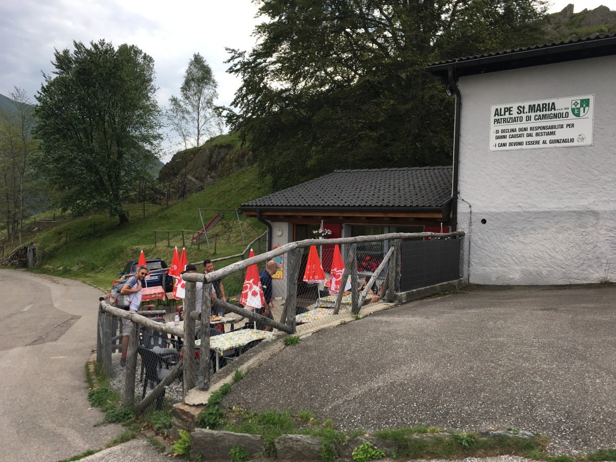 Kaum oben angekommen reisst der Himmel auf und die Sonne scheint wieder vom blauen Himmel. So gehts hinunter zum wunderschönen Örtchen Ciona, wo wir ausgiebig fotografieren und das Tessiner Ambiente geniessen. Und endlich finden wir kurz darauf auch ein typisches Grotto für ein Glas Weisswein. Nach dem Rast im hübschen Grotto del Pan Perdü wandern wir weiter zur Alpe Vicania welche uns richtig umhaut. Eine solch gepflegte Alpbeiz mit 14 Gault Millau Punkten findet man wohl nicht so schnell wieder. Wir lassen es uns nicht nehmen und bestellen eine edle Flasche Weisswein Castello die Morcote, welcher uns hervorragend schmeckt. Dazu werden wir mit frisch geschnittenem Schinken und allerlei Häppchen bewirtet. Auch dieser Ort ist absolut eine anstrengende Wanderung wert. Ein bisschen fahrig vom Wein laufen wir den steilen Weg über Vico Morcote bis nach Morcote hinunter und landen direkt vor unserem Hotel - Ristorante del battello. Nach einem höchstens mittelmässigen Abendessen im Hotel lassen wir den langen Tag bei einem Bierchen ausklingen.