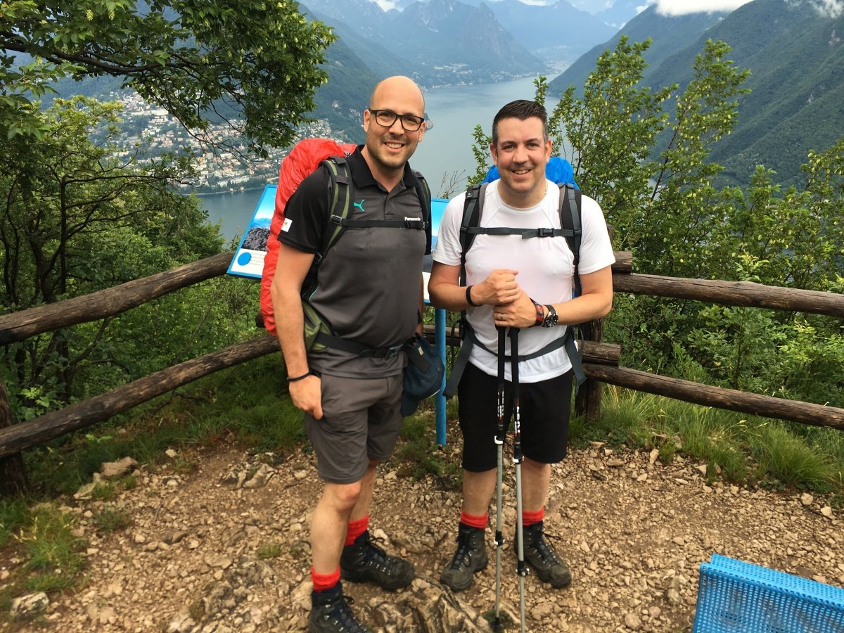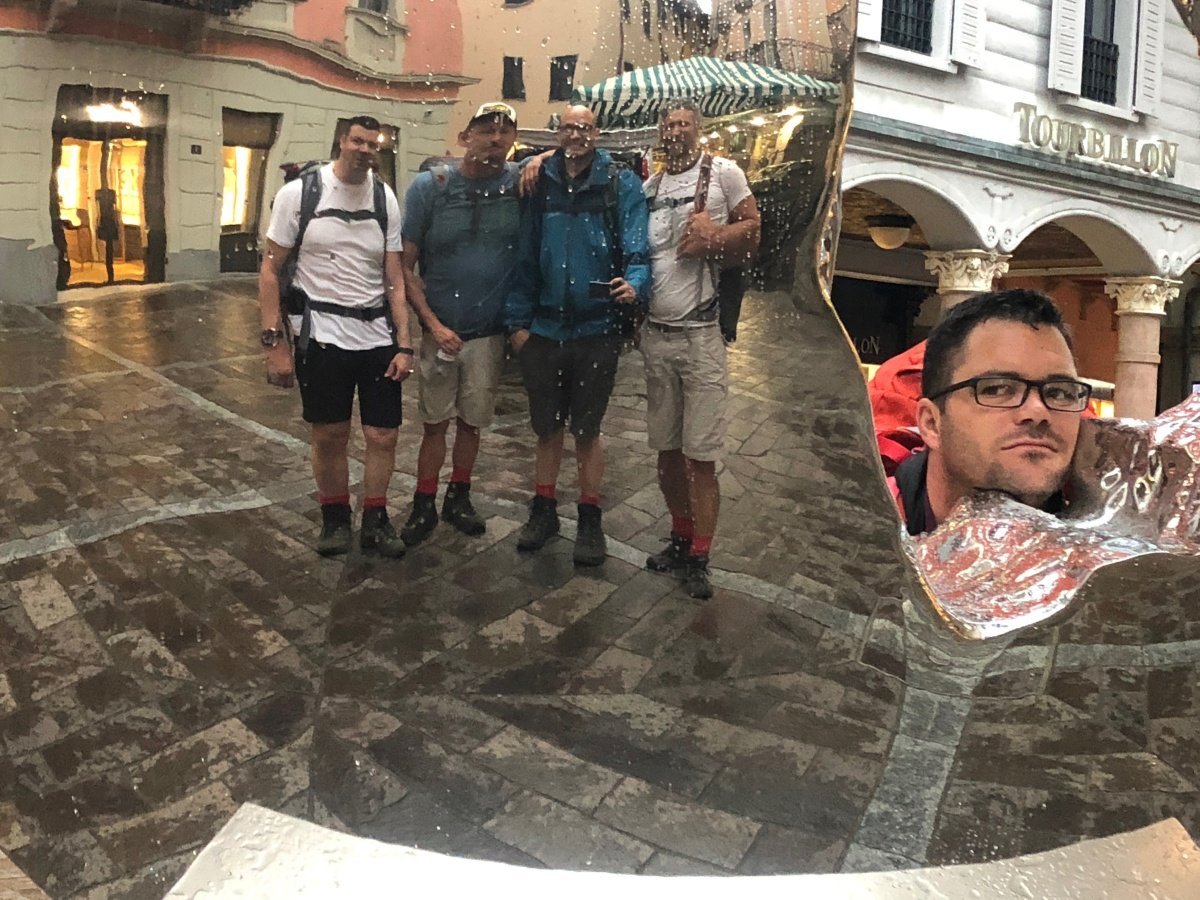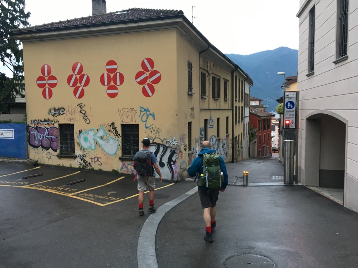 Nach einer unruhigen Nacht mit heftigen Gewittern erwartet uns am Morgen zur Abwechslung leichter Regen und bedeckter Himmel. Nach einem feinen Frühstück laufen wir los quer durch Lugano bis nach Lugano - Paradiso. Das kühle Wetter ist optimal um den steilen San Salvatore zu erklimmen. Motiviert wie die Feuerwehr schaffen wir den Aufstieg statt in den angegebenen 2h 25min in gut einer Stunde weniger.
