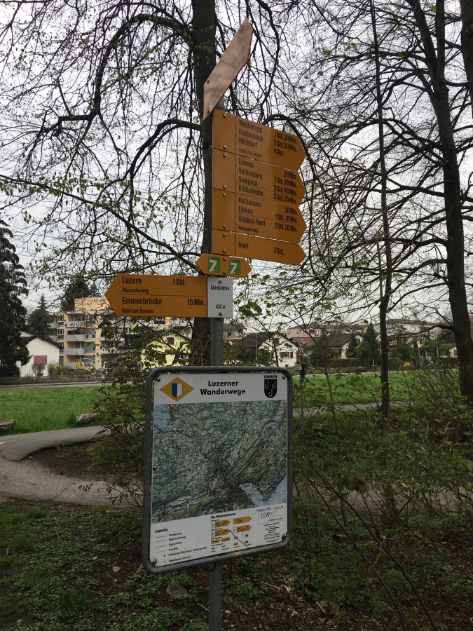 Wir treffen uns am Bahnhof Luzern für eine Weitwanderung bis zum Sempachersee. Die Tour ist als Vorbereitung für den Rigi - Nachtmarsch gedacht. Das Wetter ist eher feucht und es weht eine unangenehme Bise.