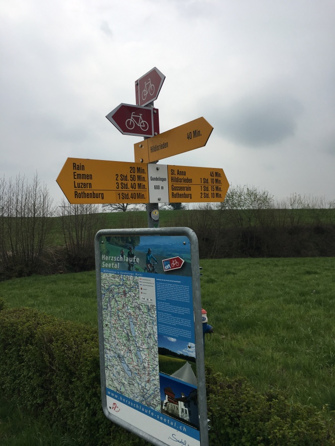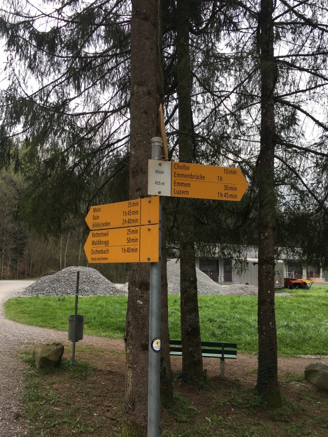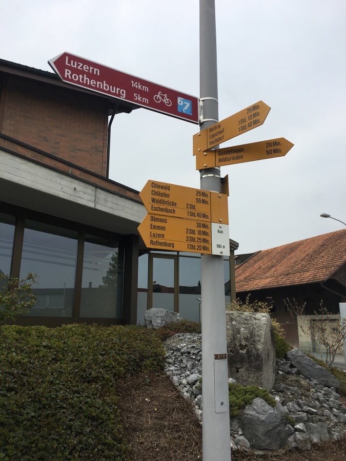 Die Wanderung führt zuerst immer der Reuss entlang bis nach Emmen, wo wir den Flugplatz überqueren. Danach geht es weiter durchs wilde Rotbach - Tobel nach Rothenburg. In Rothenburg machen wir den ersten, kurzen Halt bei einer Bäckerei auf dem Dorfplatz. Nach dem Rast wandern wir über Rain bis zur Verzweigung Gundelingen.