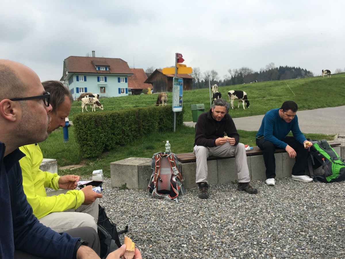 Dort finden wir direkt am Weg einen gemütlichen Rastplatz für das Mittagessen. Frisch gestärkt gehts weiter nach Hildisrieden wo wir im roten Löwen einen kurzen Tankstopp einlegen. Schon bald darauf erreichen wir Neudorf von wo wir über den Bloseberg bis nach Bäch marschieren. Kurz vor Bäch halten wir uns links Richtung Vogelsang. Im Restaurant Vogelsang machen wir einen weiteren Halt, bevor wir nach Eich hinuntersteigen und dann auf dem Panoramaweg über dem Sempachersee nach Sempach wandern. Zum Abschluss der anstrengenden Tour lädt Chrigubock alle zum verdienten Bier und Abendessen ein...