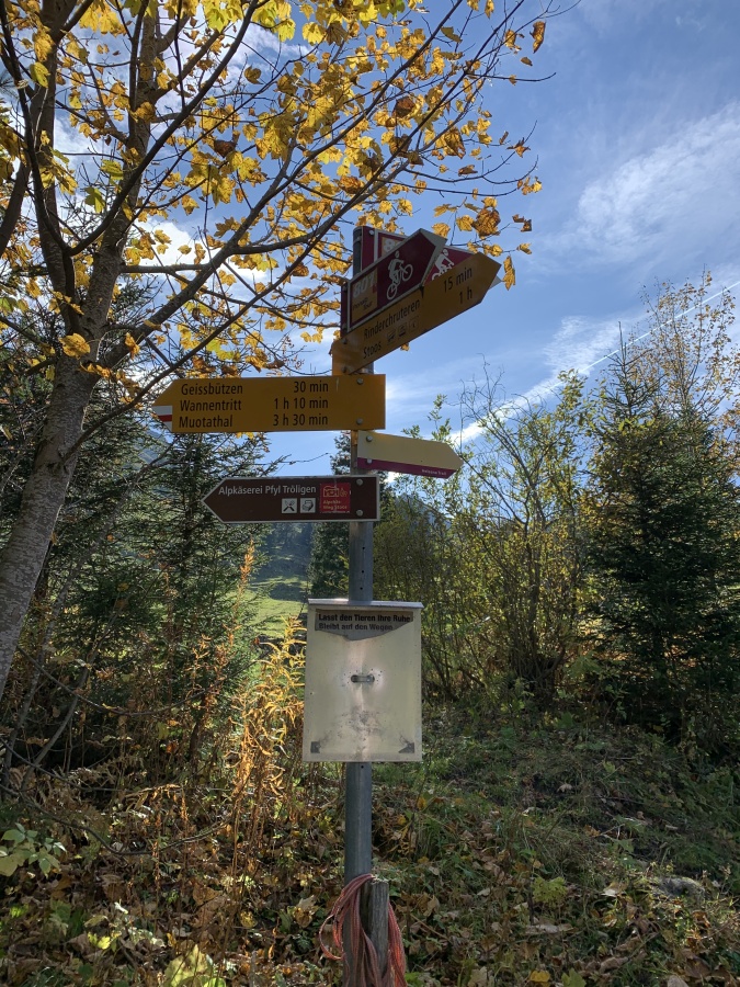An diesem regnerischen Morgen funktioniert erst mal gar nichts. Die SBB haben überall Verspätungen und wir verpassen die Anschlusszüge. Gestartet um 07.15 Uhr erreichen wir um 10.30 Uhr erst das Dorf Muotathal. Der Vorteil ist, dass es inzwischen fast aufgehört hat zu regnen. Wir marschieren sofort los und steigen direkt vom Dorf steil hinauf bis zur Alpstrasse. Von dort wandern wir weiter bergauf über Frutt und Hochweidli bis zum Wannentritt. Das Wetter bessert sich zusehends und schon bald begrüssen uns die ersten Sonnenstrahlen. Beim Wannentritt haben wir gut 1000 Höhenmeter Aufstieg geschafft und wir machen wohlverdient Mittagspause. Dabei geniessen wir das schöne Panorama mit Sicht auf den Planggstock und die warmen Sonnenstrahlen.