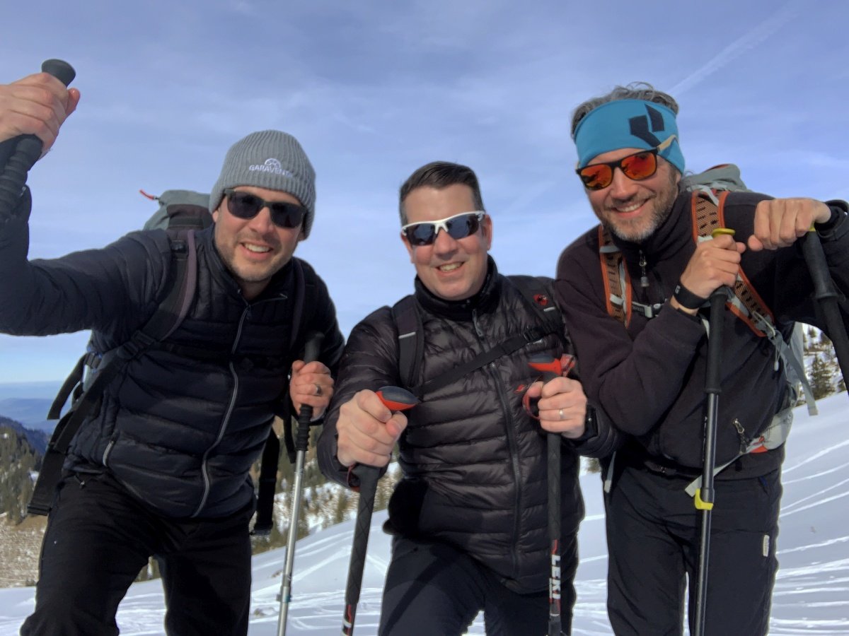 Im Brisenhaus angekommen, geniessen wir eine Suppe mit Wurst und Brot in der warmen Gaststube. Leider ist die Terrasse trotz viel Sonne und besten Bedingungen geschlossen. Dennoch sitzen alle Gäste draussen und beobachten den Wettkampf im Tourenski - Laufen der heute ausgetragen wird. Wir staunen, dass aus dem ruhigen und beschaulichen Tourenski - Laufen inzwischen ein Wettkampf mit High-Tech Carbonski und grossem Gerenne entstanden ist. Nachdem wir die Sonne ausgiebig genossen haben, machen wir uns Querfeldein an den Abstieg über Die Hüethütte zurück nach Niederrickenbach, wo wir bei frühlingshaften Temperaturen auf der Terrasse beim Pilgerhaus noch ein paar feine Kafi Zwätschge bodigen.