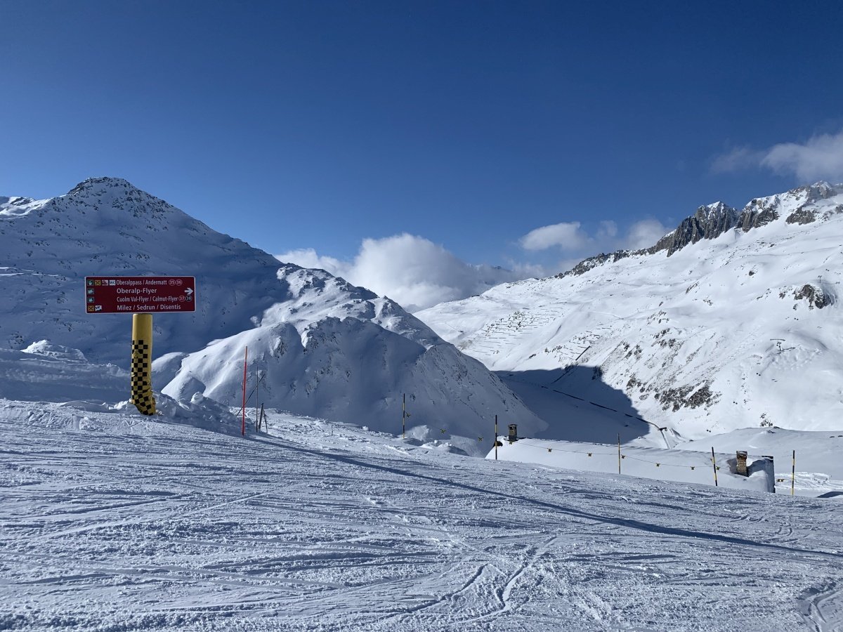 Zum Glück haben nur wenige damit gerechnet und wir haben heute sehr viel Platz auf den schönen Pisten von Andermatt bis Dieni. Das war auch das Mindeste bei diesen Preisen für die Tageskarten...