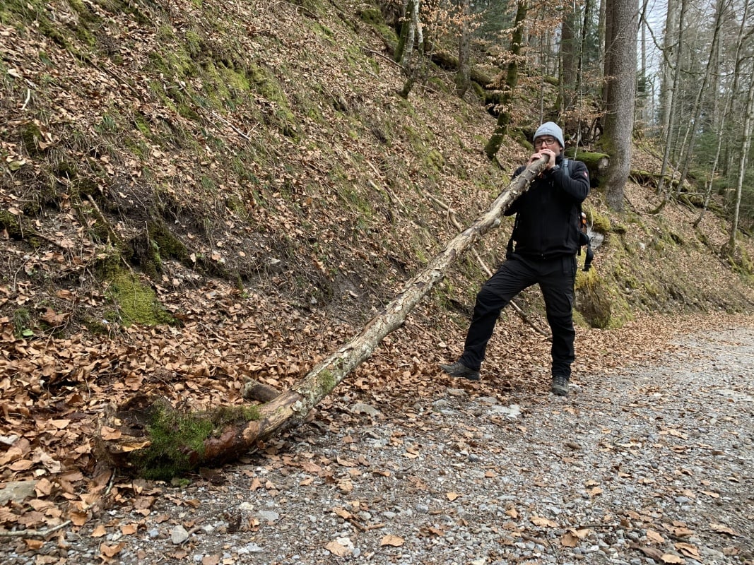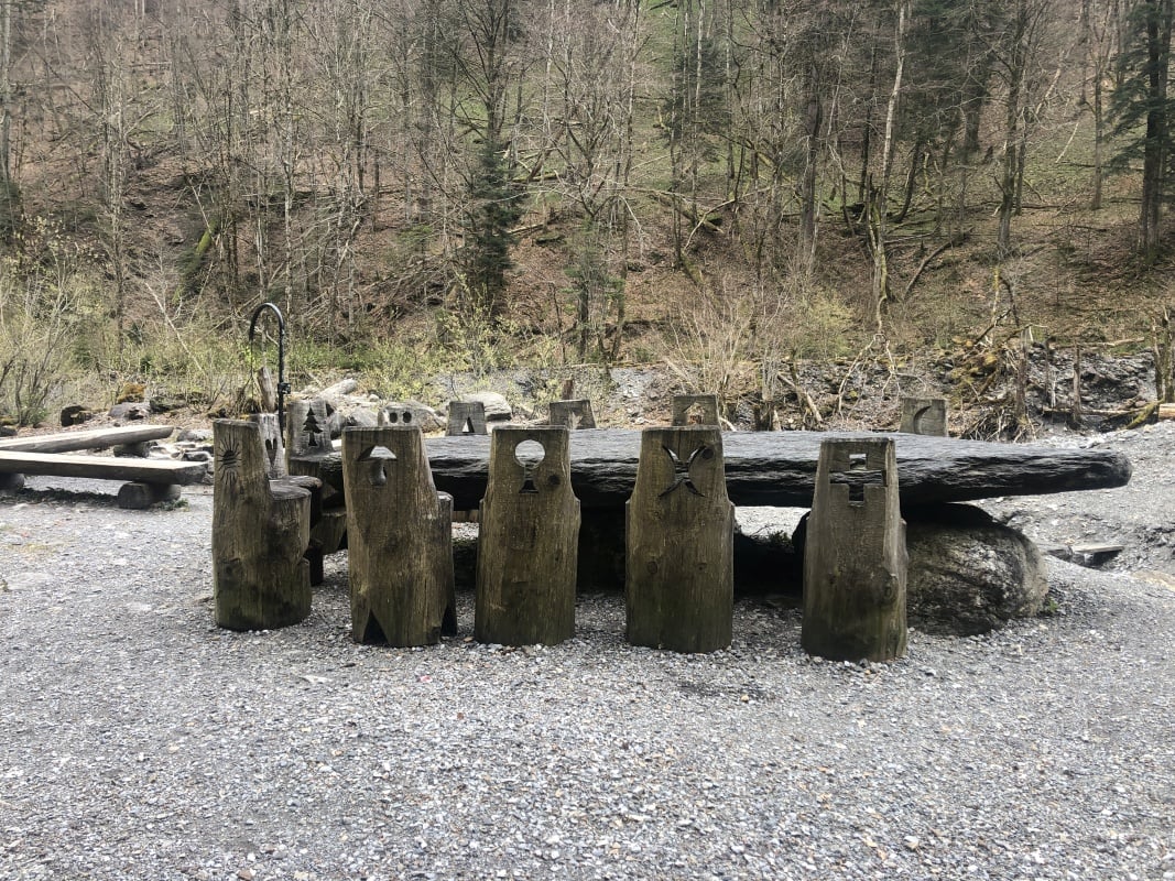 Bei kaltem und windigem Bisenwetter starten wir vom Bahnhof Stansstad Richtung See. Von dort folgen wir dem Wanderweg Nr. 40 Via Sbrinz bis nach Stans und von dort immer weiter der Engelberger Aa entlang bis Grafenort. Nach Grafenort wandern wir in die wilde Aaschlucht hinein, wo es diverse schöne Grillplätze zum Rasten gibt. In der Schlucht gibt es kein Wind und sogar die Sonne scheint, so dass wir wieder einmal eine Cervelat am Feuer grillen.