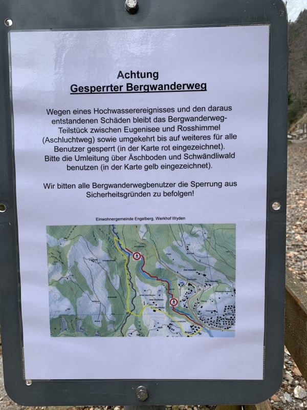 Nach der köstlichen Verpflegung, gehen wir weiter durch die Aaschlucht, welche durch Unwetter und Lawinen arg in Mitleidenschaft gezogen wurde. Überall sind Arbeiten im Gang um den Wanderweg wieder instand zu stellen. Ein Abschnitt des Weges ist sogar ganz gesperrt und wir müssen einen anderen Weg wählen. So gelangen wir schlussendlich nach gut 25km Marsch nach Engelberg wo wir mit dem Zug zurück zum Ausgangspunkt fahren.