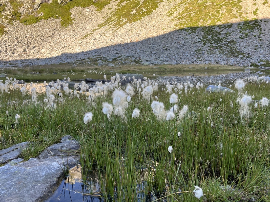 Nach einer typischen Nacht in einer SAC-Hütte mit viel Geschnarche und etwas dicker Luft, geniessen wir morgens um 07:00 Uhr das einfache, aber schmackhafte Frühstück. Danach füllen wir unsere Getränkeflaschen mit dem feinen, offerierten Hüttentee und marschieren bei sehr angenehmen Temperaturen los Richtung Greina-Ebene. Nach einem ersten Aufstieg durch das kleine Tal am Fusse des Muot la Greina erreichen wir eine kleine Hochebene mit einem Bergsee und einem Teppich aus Wollgras dem Ufer entlang. Nach einem weiteren, Kurzen Aufstieg gelangen wir an das Ende des schmalen Tals und wir sehen die ganze Greina-Ebene im Morgenlicht vor uns liegen. Der Anblick ist einzigartig und wir geniessen eine Weile lang die Aussicht. Nach der Rast wandern wir immer am Rand der Hochebene entlang bis zum Passo della Greina. Dabei folgen wir nicht dem Alpenpässe-Weg Nr 6, sondern halten uns rechts. Der Weg ist kleiner, steiniger und beinhaltet eine kleine Kletterpassage, ist aber weniger bevölkert als der Wanderweg mitten durch die Ebene. Nach dem Pass gelangen wir zur Scaletta-Hütte, wo wir rechts abbiegen und auf spektakulärem Weg ins Val Camadra absteigen. Am Fluss "Brenno della Greina" machen wir Mittagsrast. Danach folgen wir dem Fluss weiter bis nach Campo Blenio. Bei der Bushaltestelle Aquilesco - Ghirone besteigen wir den Bus Richtung Biasca, von wo wir mit dem Zug zurückfahren in die Zentralschweiz.