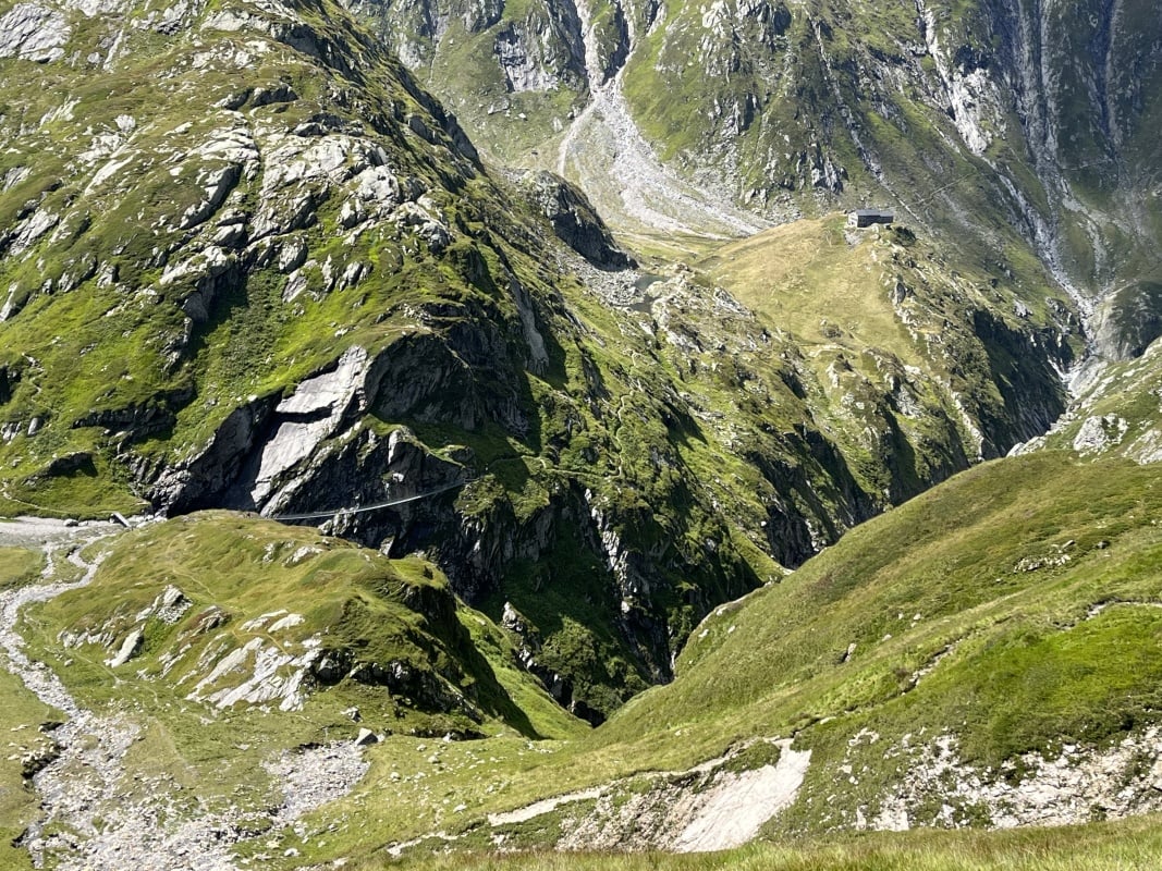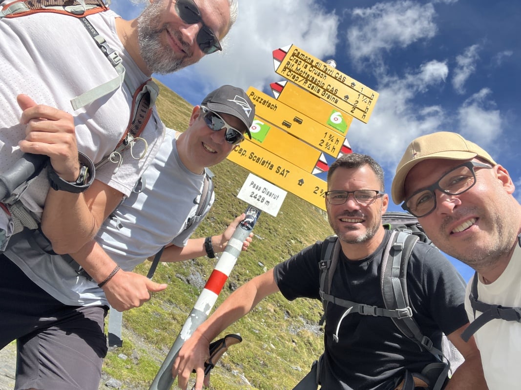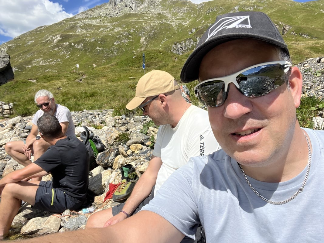 Frühmorgens um 05:30 Uhr starten wir in der Zentralschweiz mit den ÖV Richtung Puzzatsch, ganz zuhinterst im schönen Val Lumnezia gelegen. Die Fahrt dauert ewig und um 10:45 Uhr kommen wir endlich an. Das Wetter ist traumhaft und wir marschieren los Richtung Diesrut Pass (2428 müM). Es ist heiss und die fast 900 Höhenmeter lassen den Schweiss fliessen. Oben am Pass angelangt, machen wir Mittagsrast und sind gespannt auf die ersten Blicke auf die Greina-Ebene. Kaum sind wir losmarschiert Richtung Terrihütte, öffnet sich der faszinierende Blick auf die Ebene. Nach kurzem Abstieg erreichen wir den Rein da Sumvitg. Wir nutzen die Gelegenheit für ein Fussbad im kühlen Fluss und geniessen die Sonne. Nach der Rast folgt mit der Hängebrücke "Punt la Greina" ein weiterer Höhepunkt. Die Hängebrücke spannt in luftiger Höhe über die Schlucht. Beim Begehen schwankt die Konstruktion auf alle Seiten, macht aber einen sicheren Eindruck. Nach der Brücke folgt der Weg der Schlucht entlang Richtung unserem Ziel, die Terrihütte. Die Terrihütte ist eine grosse SAC-Hütte mit mehr als 100 Schlafplätzen, welche an diesem traumhaften Wochenende auch restlos belegt sind. Wir geniessen den späten Nachmittag auf der schönen Terrasse bei einem kühlen Bier. Das Abendessen schmeckt hervorragend und es gibt für Jeden mehr als genug. Vielen Dank an das sympathische Hüttenteam für den tollen und freundlichen Service!