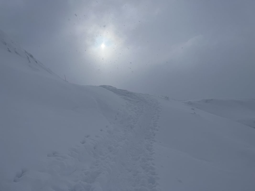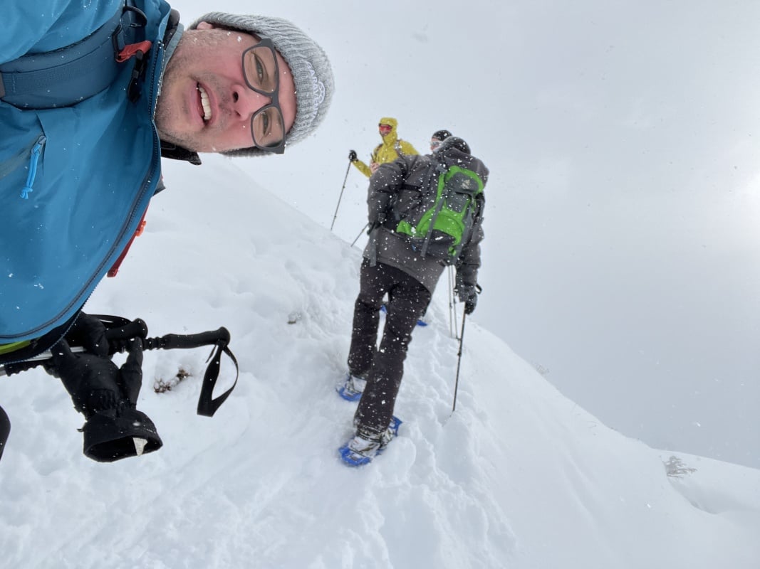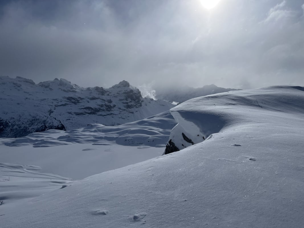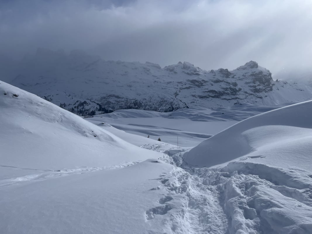 Heute steht die erste Tour im Jahr 2023 auf dem Programm. Wir fahren mit Bahn und Postauto in die Stöckalp und von dort mit der Seilbahn ins Dorf Melchsee Frutt. Es ist bitterkalt als wir unsere Schneeschuhe anschnallen und losmarschieren. Das fahle Sonnenlicht, vermischt mit Nebel und Schnee zaubert eine mystische Landschaft, als wir immer entlang der Krete bis zum Bergrestaurant Bonistock laufen. Dort angekommen, wollen wir im Restaurant einkehren, aber auf Grund der Kälte war kein Platz mehr frei und wir entschieden nach kurzer Pause, weiter Richtung Tannalp zu gehen, in der Hoffnung, dass dort mehr Platz vorhanden ist, etwas abseits des Pistenrummels. Wir wandern weiter auf dem offiziellen Schneeschuh-Trail der Krete entlang und traversieren dabei ziemlich steiles Gelände. Bei grosser Lawinengefahr sicher keine gute Idee. Heute aber bei Lawinengefahr Stufe 2 und gut verfestigter Schneedecke ist das kein Problem.