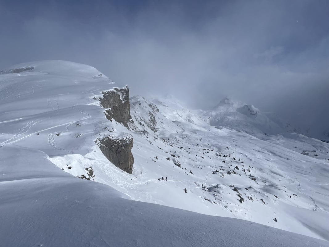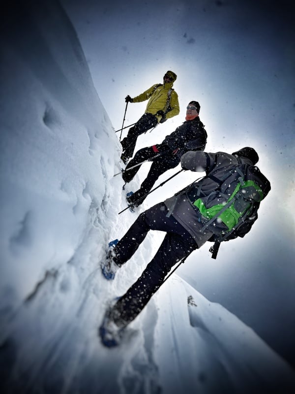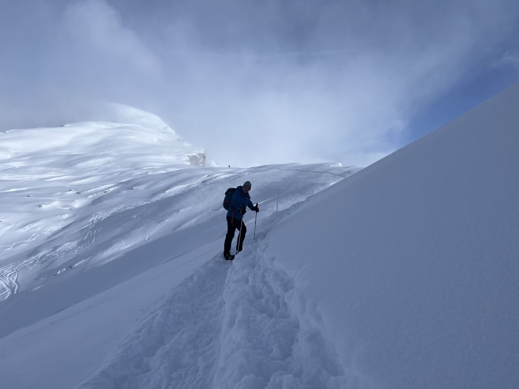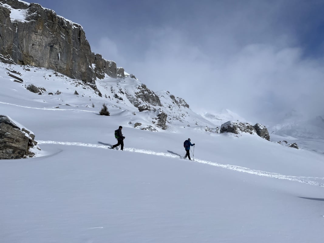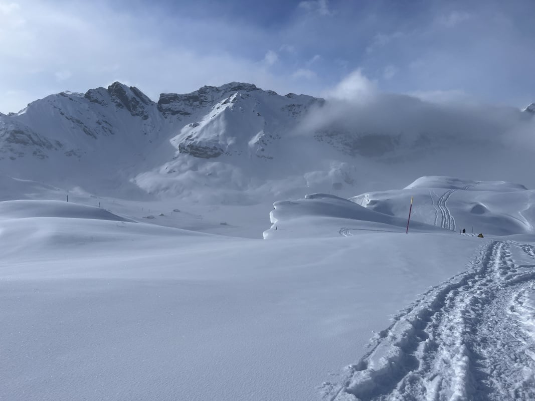 Heute steht die erste Tour im Jahr 2023 auf dem Programm. Wir fahren mit Bahn und Postauto in die Stöckalp und von dort mit der Seilbahn ins Dorf Melchsee Frutt. Es ist bitterkalt als wir unsere Schneeschuhe anschnallen und losmarschieren. Das fahle Sonnenlicht, vermischt mit Nebel und Schnee zaubert eine mystische Landschaft, als wir immer entlang der Krete bis zum Bergrestaurant Bonistock laufen. Dort angekommen, wollen wir im Restaurant einkehren, aber auf Grund der Kälte war kein Platz mehr frei und wir entschieden nach kurzer Pause, weiter Richtung Tannalp zu gehen, in der Hoffnung, dass dort mehr Platz vorhanden ist, etwas abseits des Pistenrummels. Wir wandern weiter auf dem offiziellen Schneeschuh-Trail der Krete entlang und traversieren dabei ziemlich steiles Gelände. Bei grosser Lawinengefahr sicher keine gute Idee. Heute aber bei Lawinengefahr Stufe 2 und gut verfestigter Schneedecke ist das kein Problem.