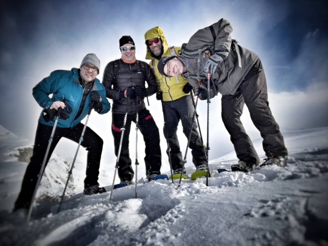 So erreichen wir den Punkt "Chringen", wo sich die Krete etwas absenkt und man hinunter Richtung Tannalp steigen kann. Die ersten paar Meter im Abstieg sind nicht einfach mit Schneeschuhen, aber auch nicht gefährlich. Nach kurzem Abstieg erreichen wir die Tannalp, wo wir in der einfachen Selbstbedienungs-Beiz etwas essen. Während dem Essen hat der Wind und auch der Schneefall deutlich zugelegt. Und so wandern wir durch einen kleinen Schneesturm zurück zur Bergstation Melchsee Frutt. Nach ein paar verdienten Kafi Zwätschge im gemütlichen Restaurant Posthuis, fahren wir mit der Seilbahn wieder in die Stöckalp und mit dem letzten Postauto nach Sarnen. In Luzern angekommen beschliessen wir, gemeinsam etwas essen zu gehen. Im "Neustädtli" geniessen wir sensationell feine Cordon-Bleus als würdiger Abschluss der tollen Tour.