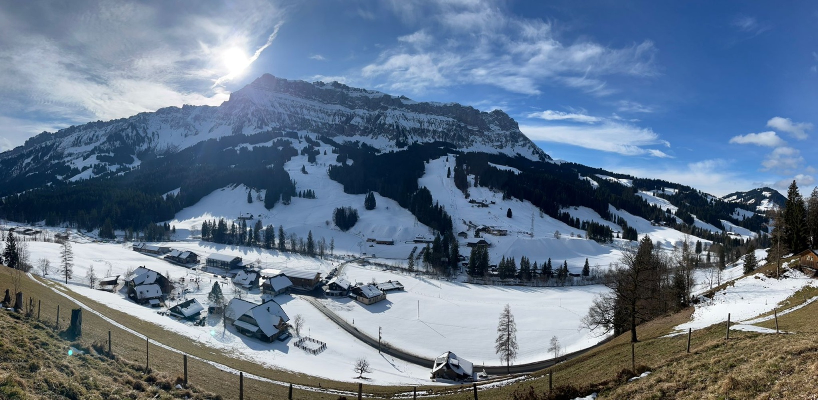 Wir fahren mit dem Postauto von Escholzmatt bis zur Talstation der Seilbahn auf die Marbachegg. Mit der alten Gondelbahn gehts hinauf auf die Marbachegg. Nach einem Kaffee und Gipfeli im Berggasthaus wandern wir los. Die Winterwanderung von der Marbachegg bis nach Bumbach führt in dieser Richtung nur bergab, immer mit schönem Ausblick auf die Schratteflue und den Hohgant.